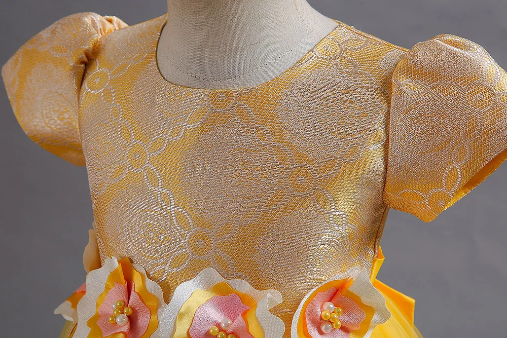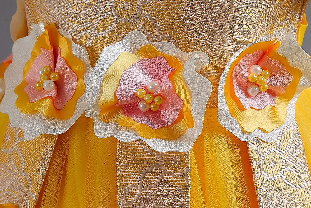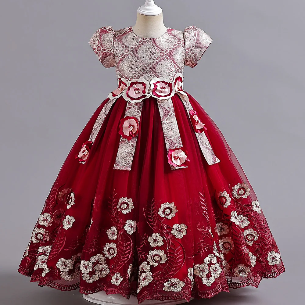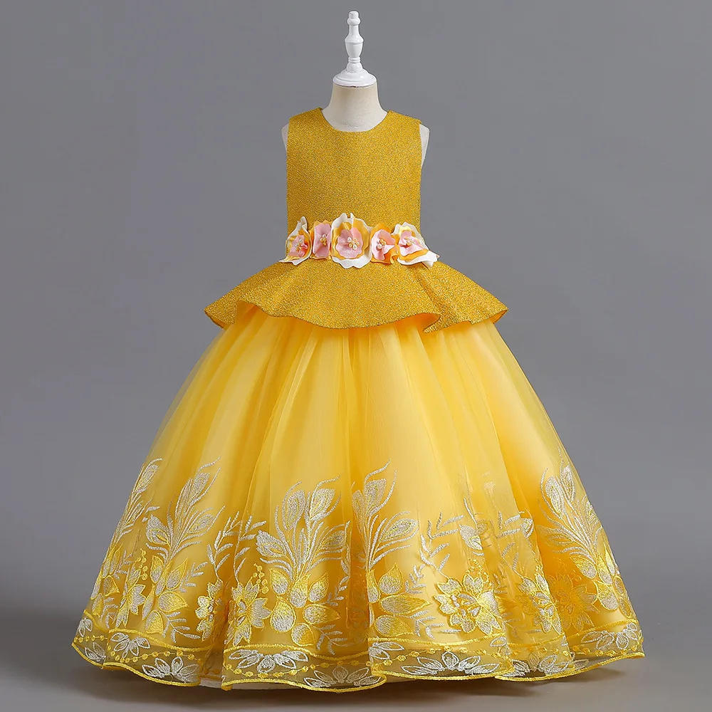 2023 New Year Teenager Girls Elegant Long Dresses Flowers Girls Princess Dress Carnival Easter Ceremony Party Sequins Ball Gown