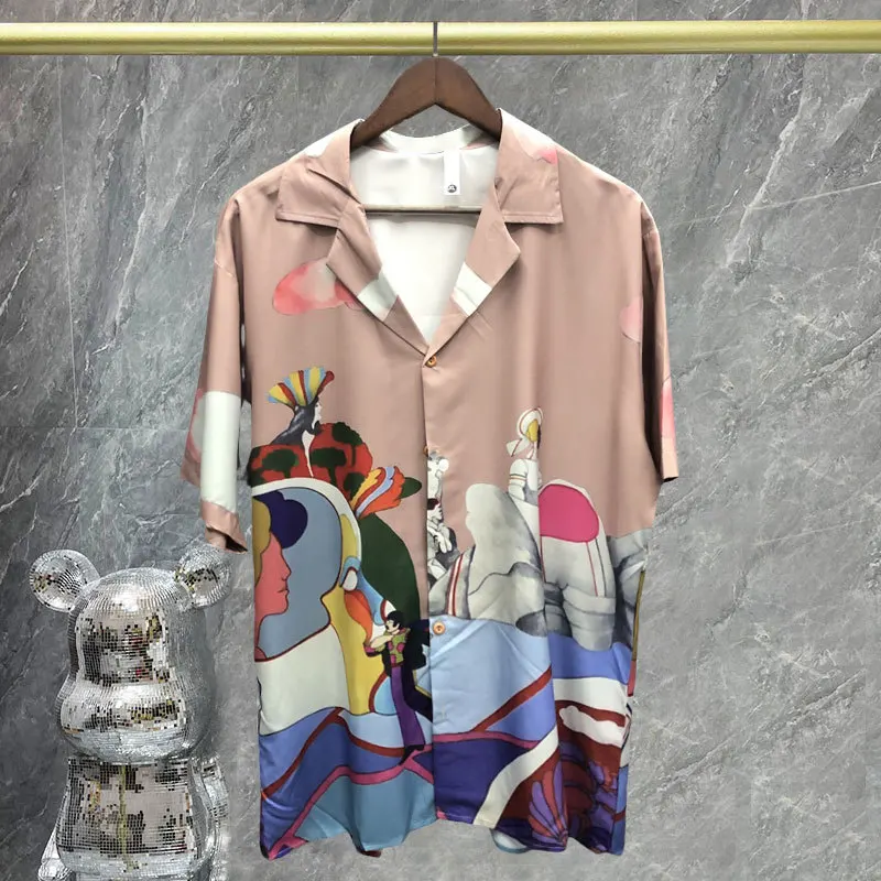 2023 Summer Hawaiian Casual Shirt Streetwear Artistic Abstract Shirts Men Short Sleeve Men High Street Chemise Homme