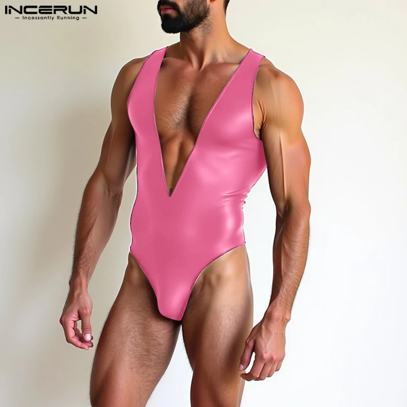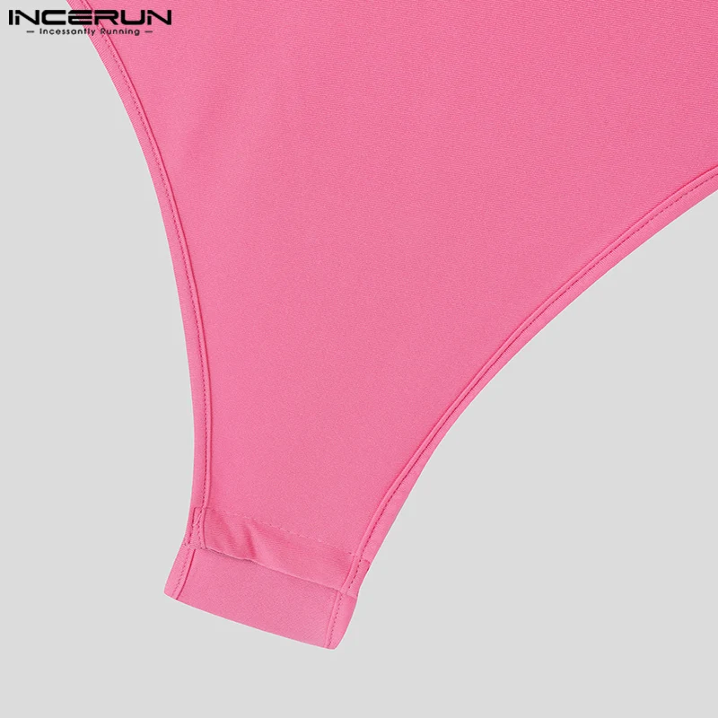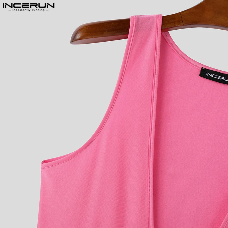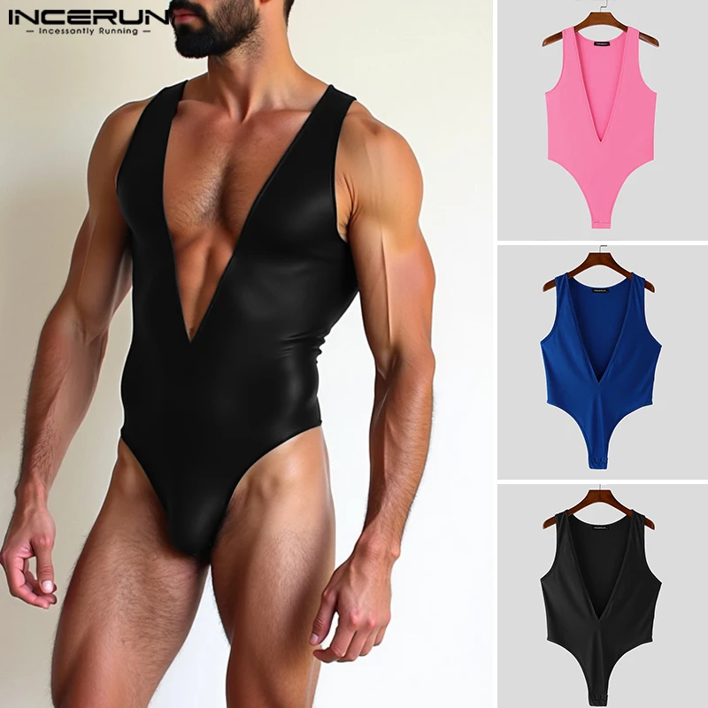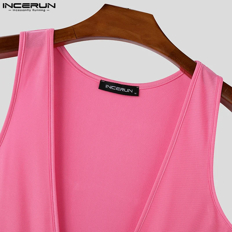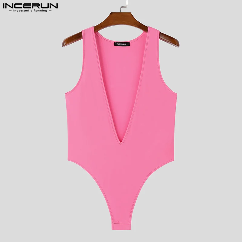 2024 American Sexy Men Sleeveless Bodysuits INCERUN Men Causal Solid Color Onesies Deep V-neck Comfortable Homewear Loungewear