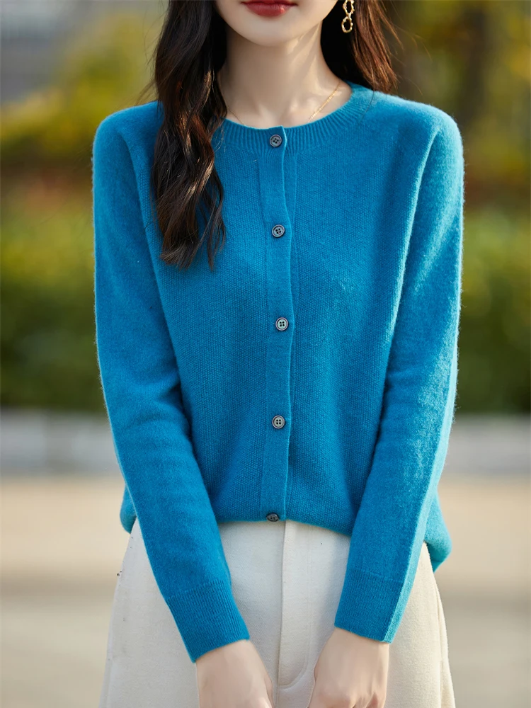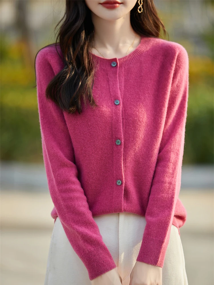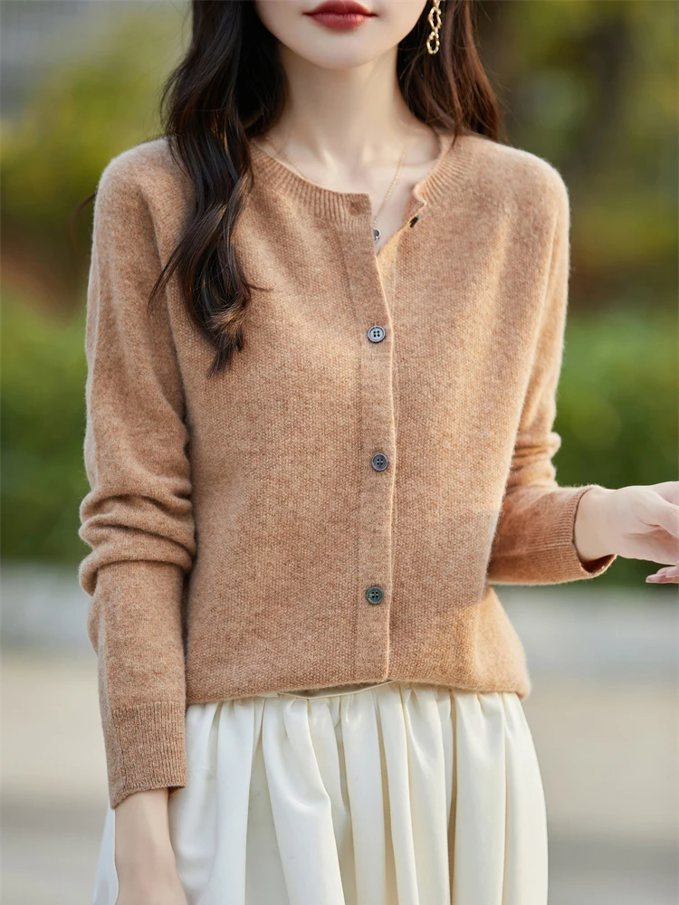 2024 Basics Autumn Winter Women Sweater Sales Merino Wool Knitwear New Fashion Solid Cardigan Classic Long Sleeve Clothing Tops