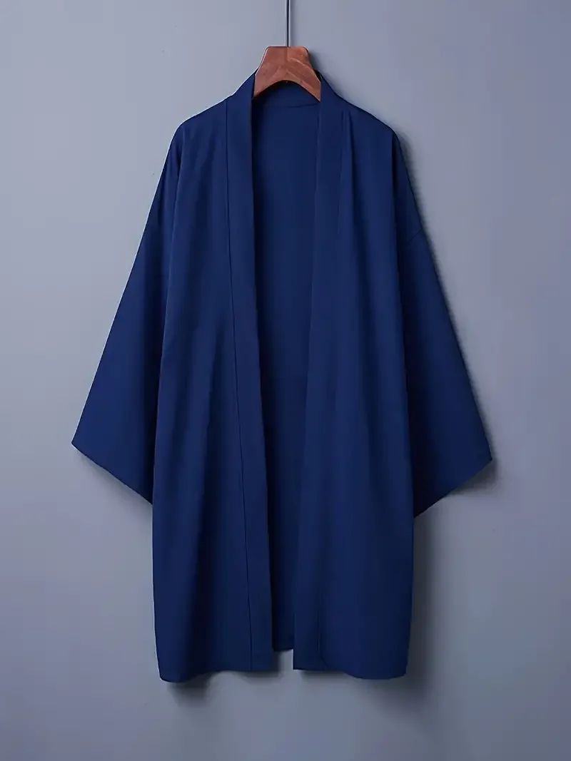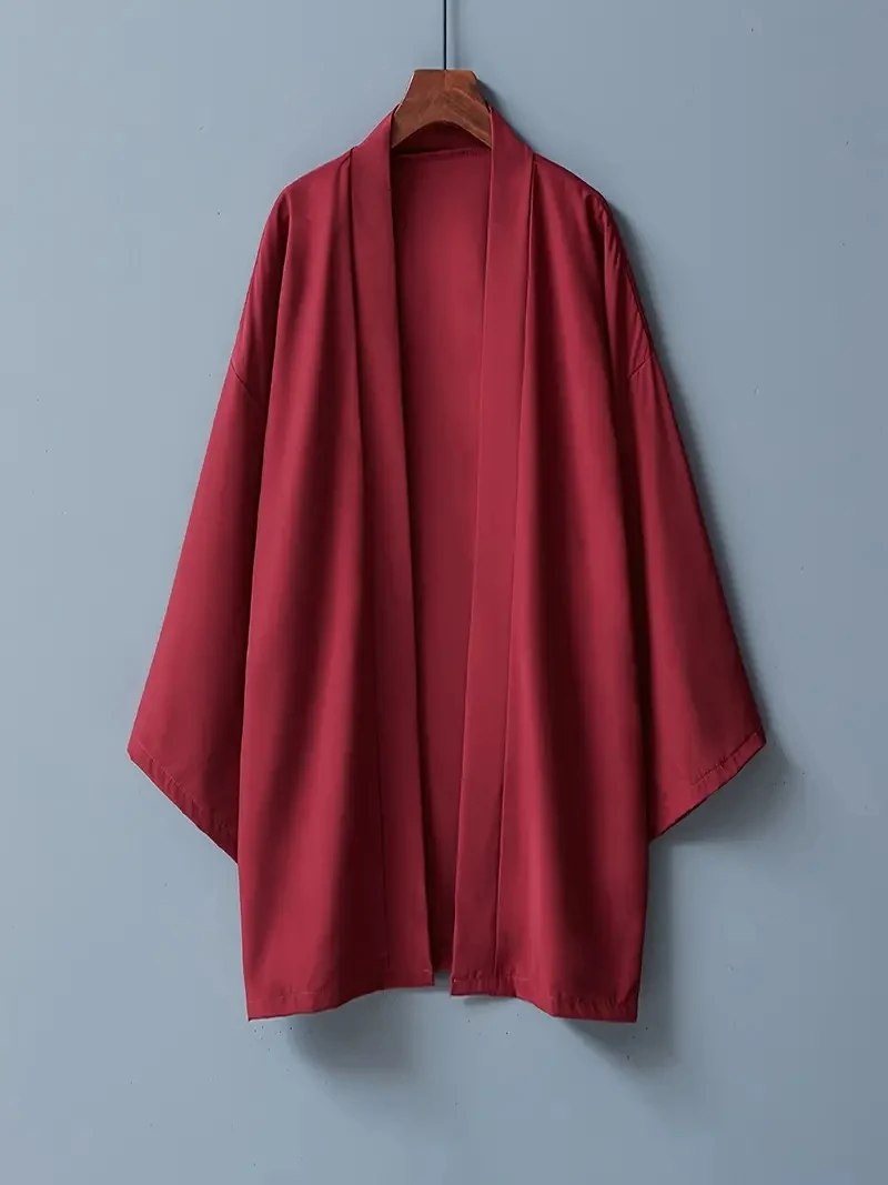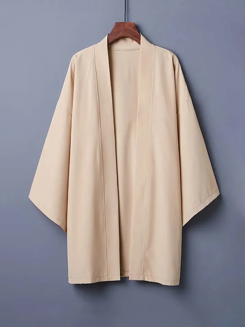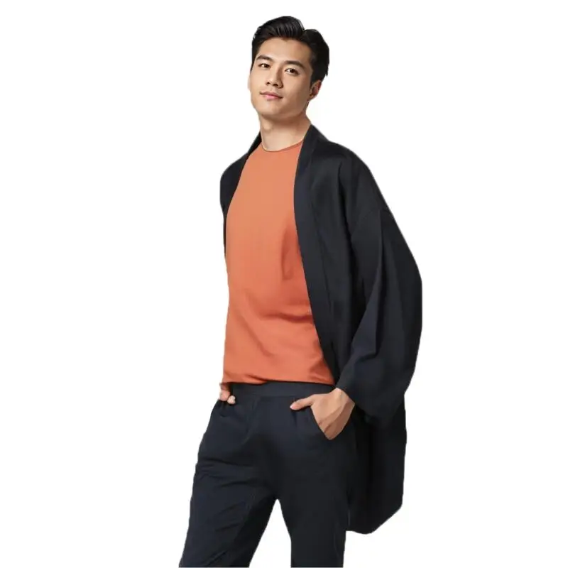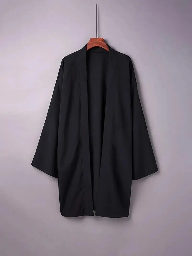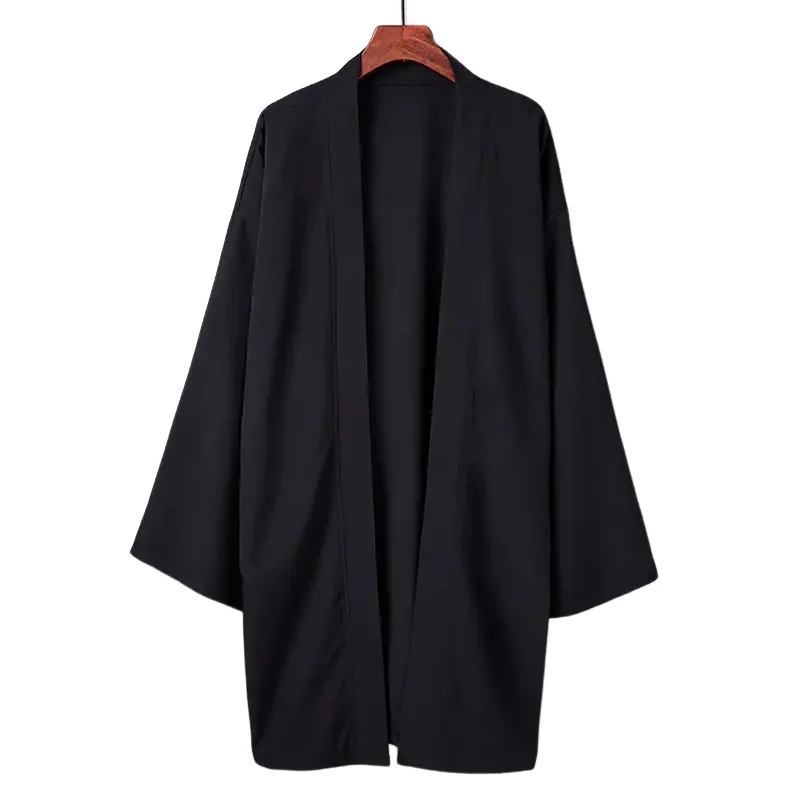 2024 New Men’s Long Solid Color Japanese Kimono Poncho Summer Casual Loose Women’s Yukata Haori Beach Black Hiyoshi Shirt Jacket