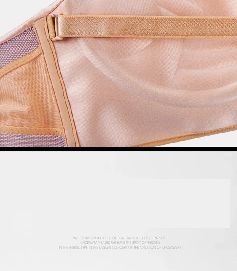 Seamless edges and no straps/back hooks remain hidden under sheer fabrics or backless outfits.