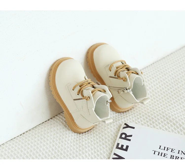 2024 New Spring/Autumn Baby Boots Leather British Style Boys Fashion Boots Rubber Sole Zip Side Toddler Girls Ankle Boots 15-25