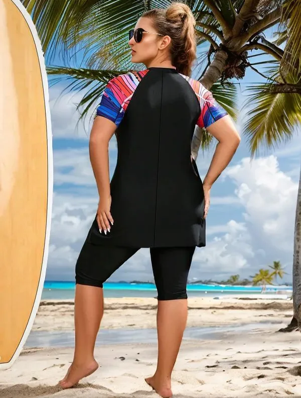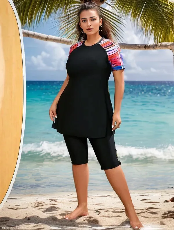 2024 Patchwork 2 Piece Plus Size Tankini Set Women Large Big Muslim Swimsuit High Waist Lady Swimwear Chubby Curvy Bathing Suit