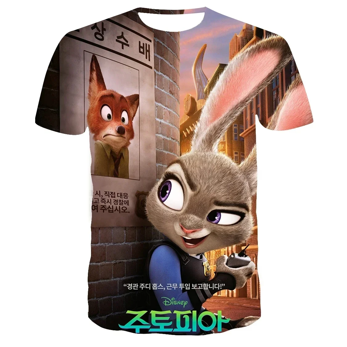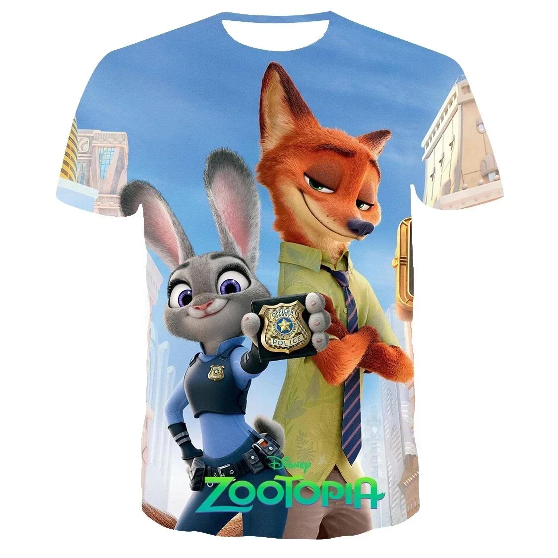 2024 Summer Disney Cartoon Movie Zootopia Kids Streetwear Short Sleeve Judy Nick T Shirt Kids Clothing T-shirt Boys Girls Tops