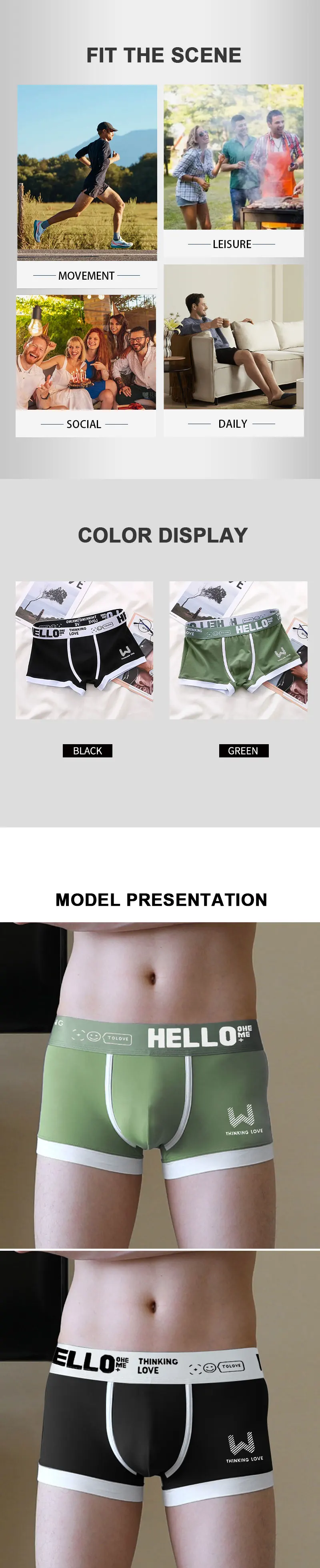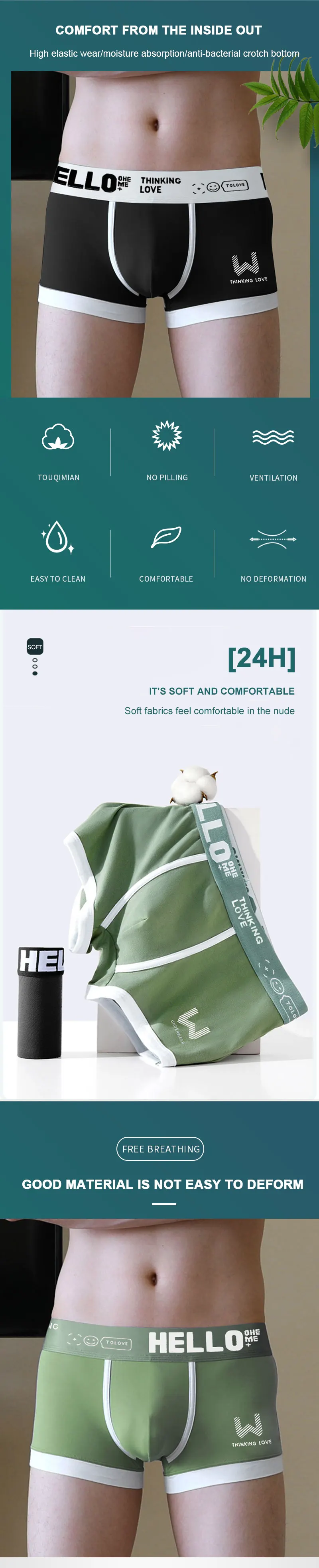 This men’s underwear, made of pure cotton fabric, ensures the softness and comfort of the underwear. Cotton material has excellent moisture absorption and breathability, which keeps you dry and comfortable even in the hot summer, avoiding the discomfort caused by stuffy and non-breathable heat. At the same time, the cotton fabric is skin-friendly and non-irritating, so you can wear it with more confidence.