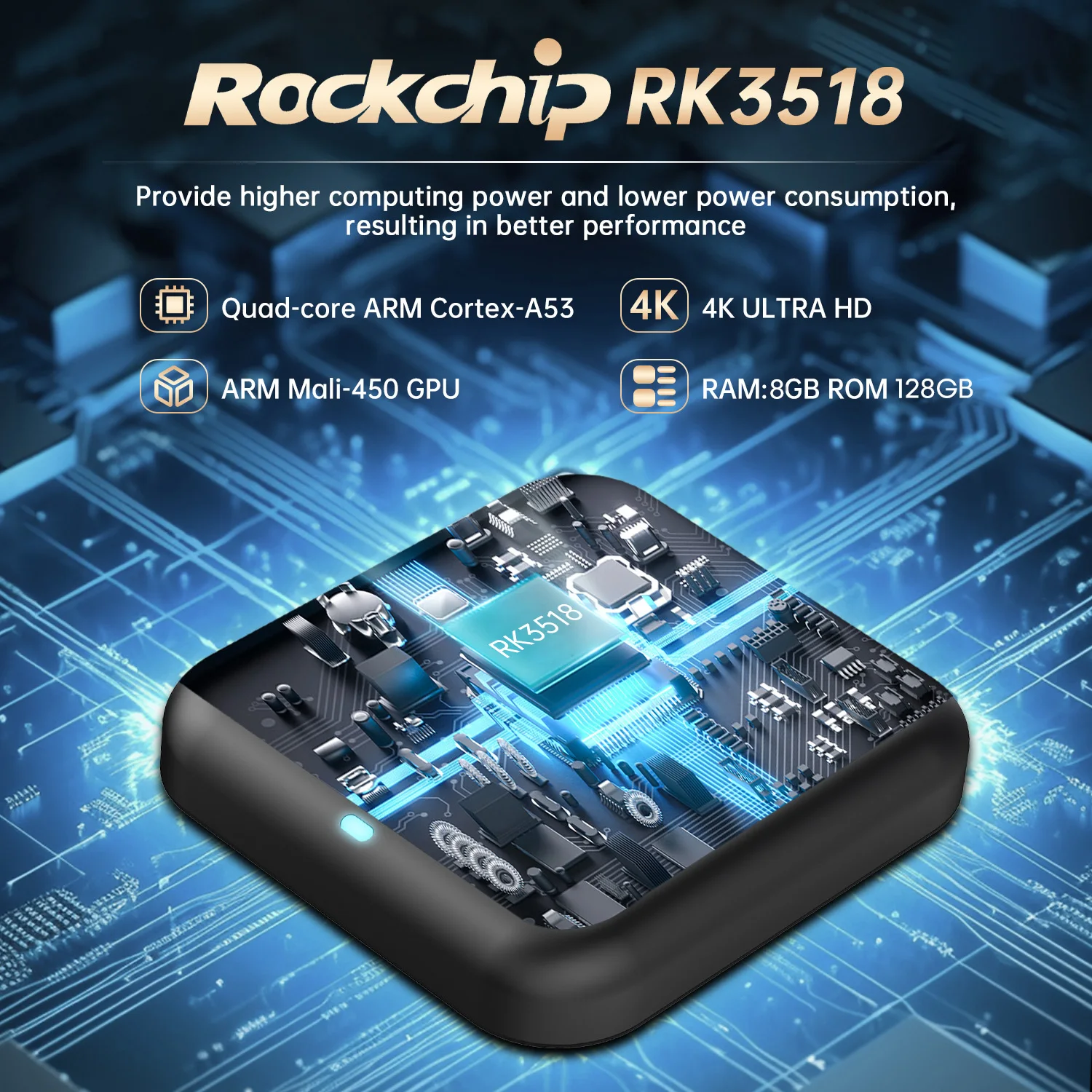 CPU: RK3518 Quad-Core 64bit Cortex-A53