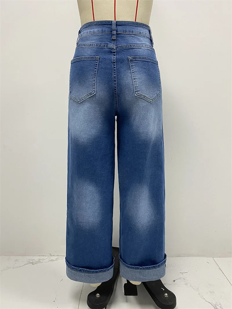 2025 Spring Fashion High Waist Straight Jeans Women Autumn Casual Loose Wide Leg Jeans Trousers Striped Palazzo Pants Streetwear