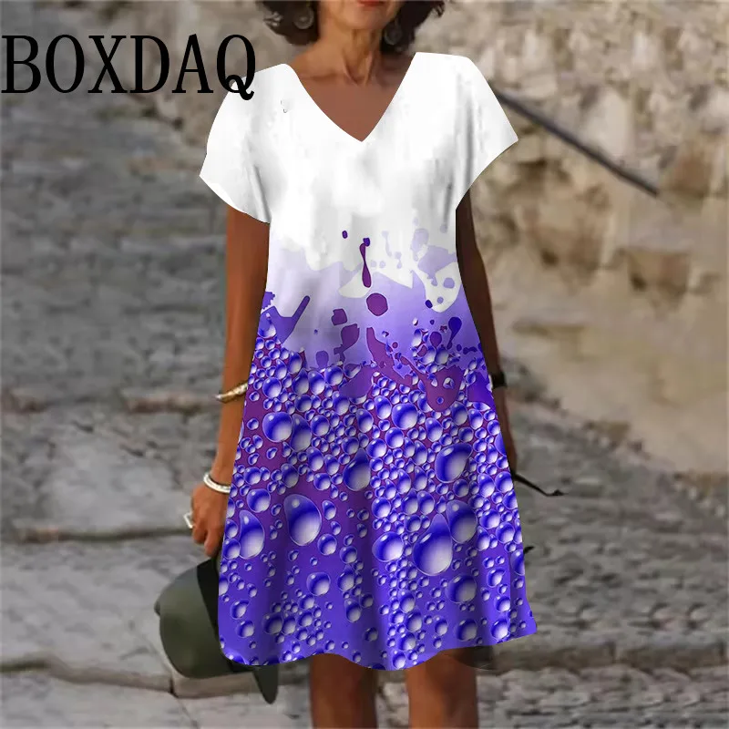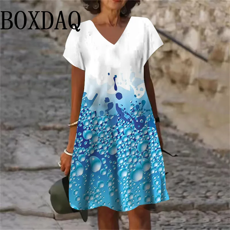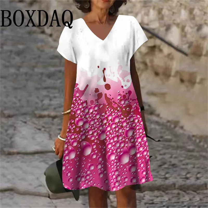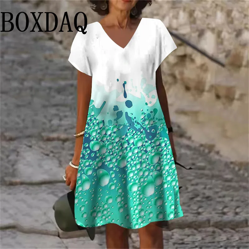 2025 Summer 3D Print Dress New Women V-Neck Short Sleeve Loose Dress Streetwear Casual Oversized Dress Woman Clothing Plus Size