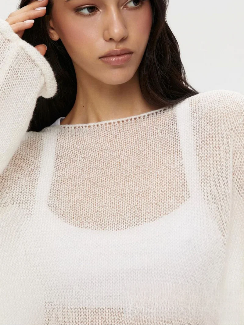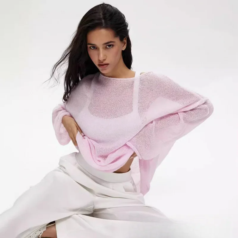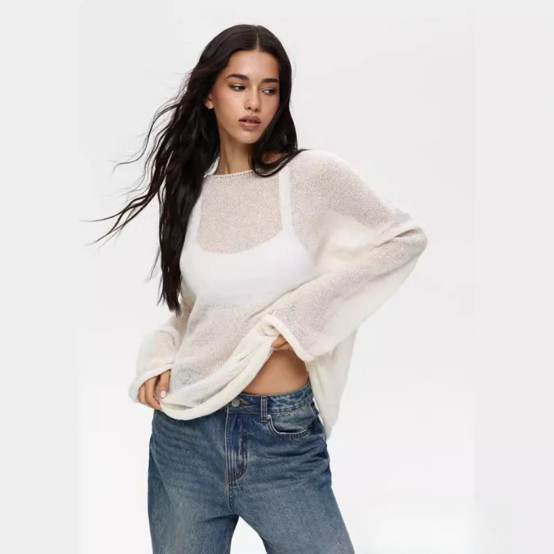 2025New Spring and Autumn Hollow Out Sweater for Women European and American StyleinsSoft and Loose Knitted Long Sleeve Cover-Up