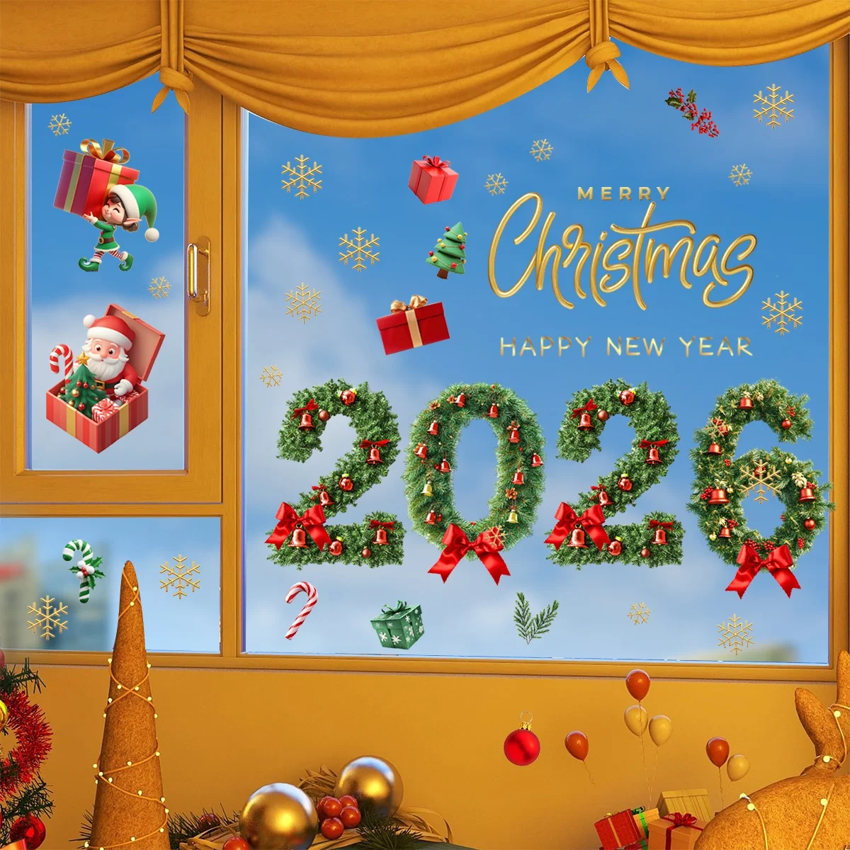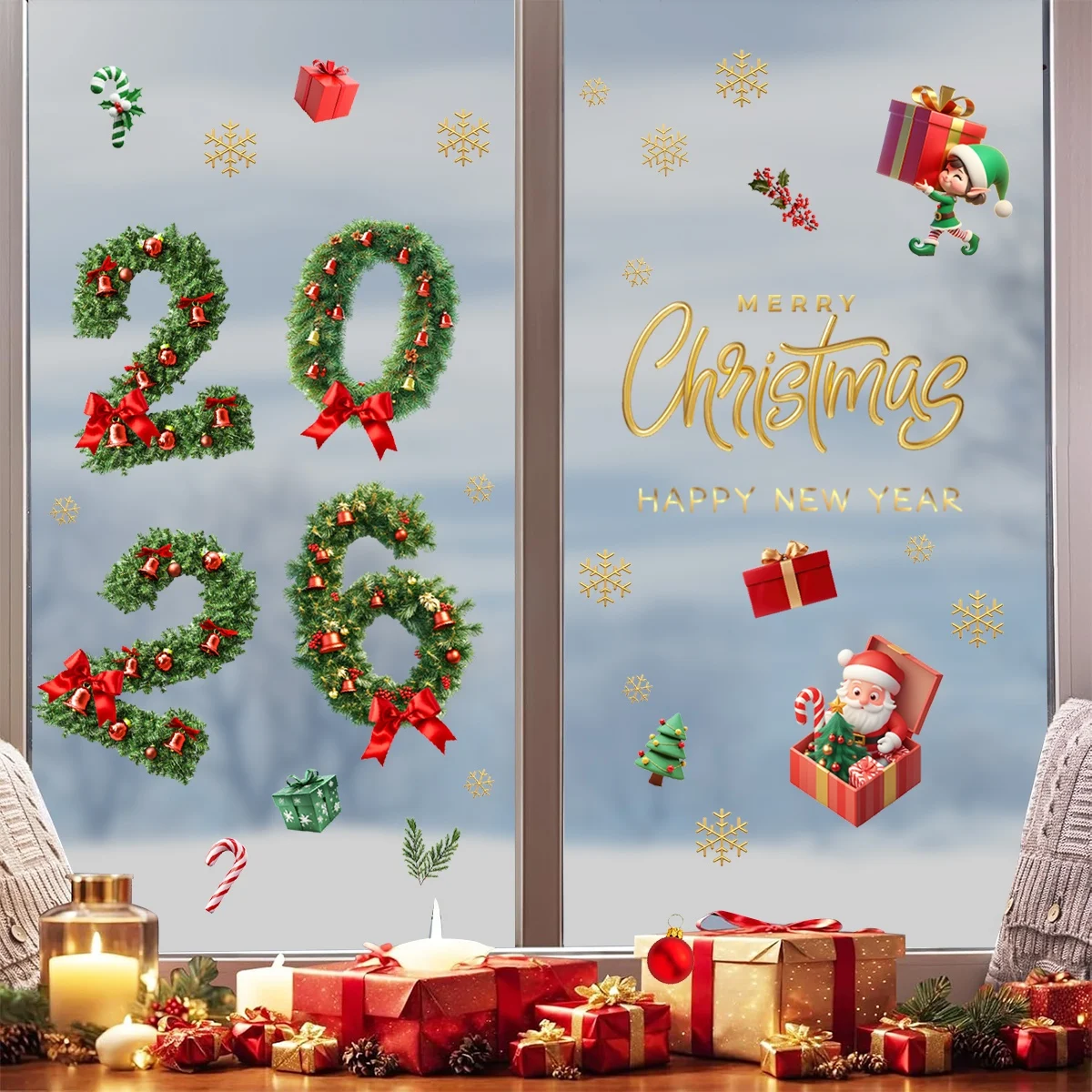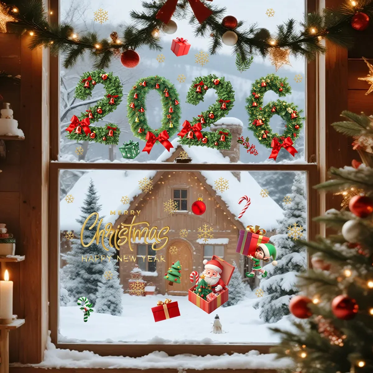 2026 Merry Christmas Glass Window Stickers Santa Claus Designs Decals Stickers For Home Xmas Ornaments Gifts Navidad Noel 2025