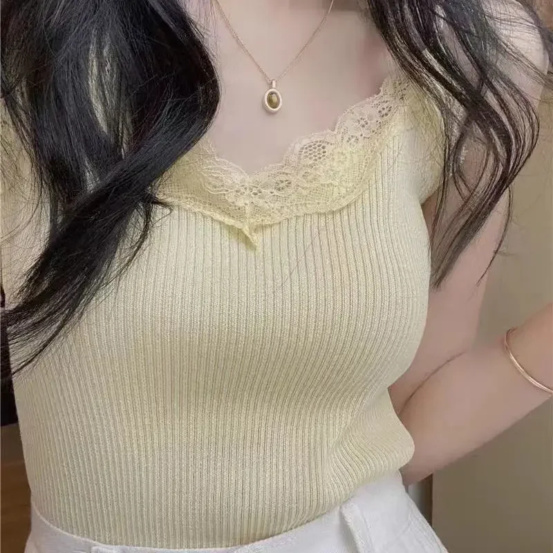 1 review for 2026 Summer Lace Tank Top Korean Sleeveless Black Vest Women Cropped Cute Camis Sexy White Tank Tops Female Y2k Clothes
