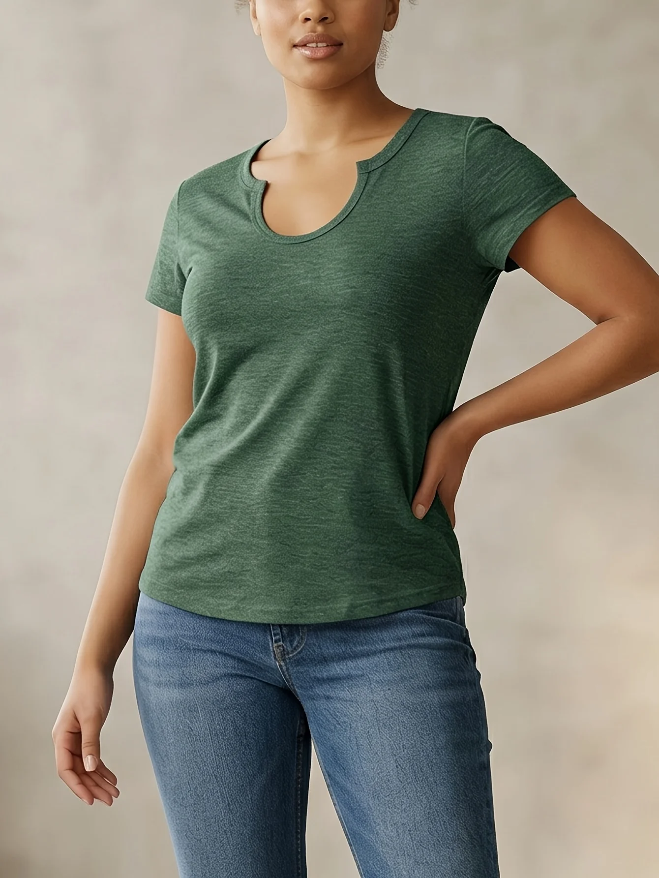 The solid color design of this T-shirt offers a classic style that complements any outfit, making it a versatile addition to your wardrobe.