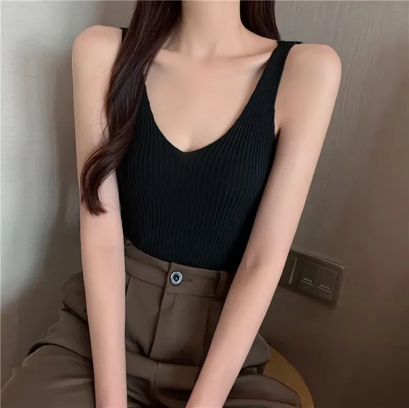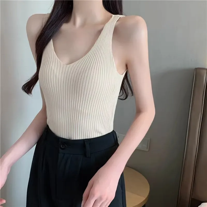 Be the first to review “2026 Summer Sexy V-Neck Sleeveless Knit Women Camis Slim Pure Desire Style Basic Crop Top Korean Style Solid Versatile Tank Top”
