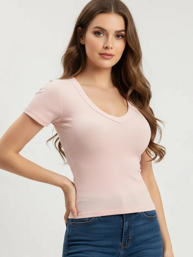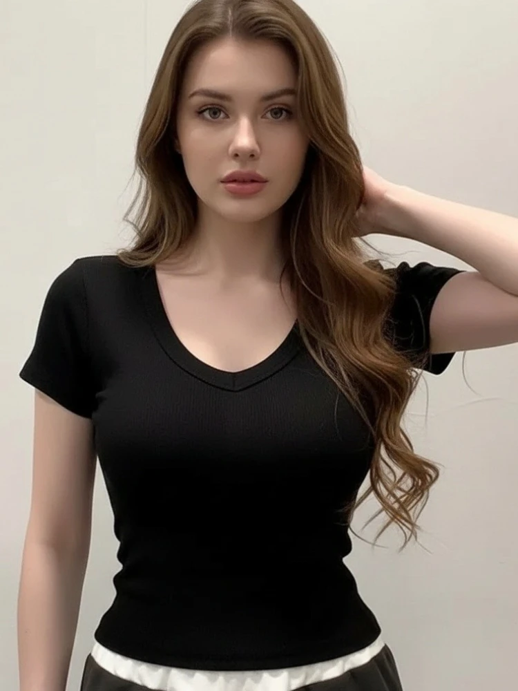 1 review for 2026 Summer Short Sleeve Women T-Shirt Solid Simple Casual Soft All-Match Basic Crop Tops Tees Fashion Skinny Tops Black White
