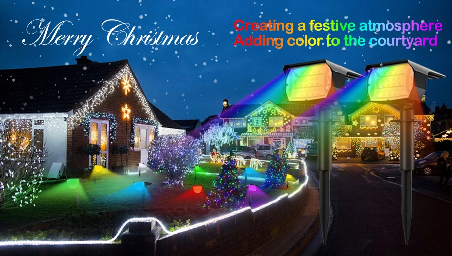 20LEDs RGB Solar Light Outdoors Landscape Spotlights Color Changing 2 In 1 Wireless Waterproof Solar Wall Lamp Patio Garden