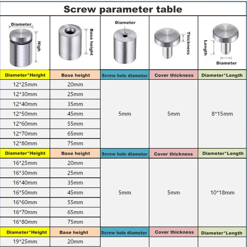 20pcs Advertising Nails 12×20/25/25mm Stainless Steel Screws for Wall Mount Glass/Acrylic Sign Standoff Fixing Screws Hardware