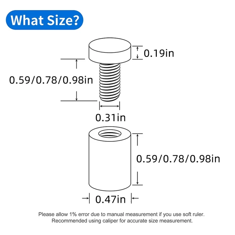 *Wide applications: our wall standoffs screws are suitable for house, hotel, company, office, supermarkets, store, shops, markets, bedroom, such as glass sign, acrylic sign, acrylic plate, acrylic picture frame indoor and outdoor advertising boards, photo and so on