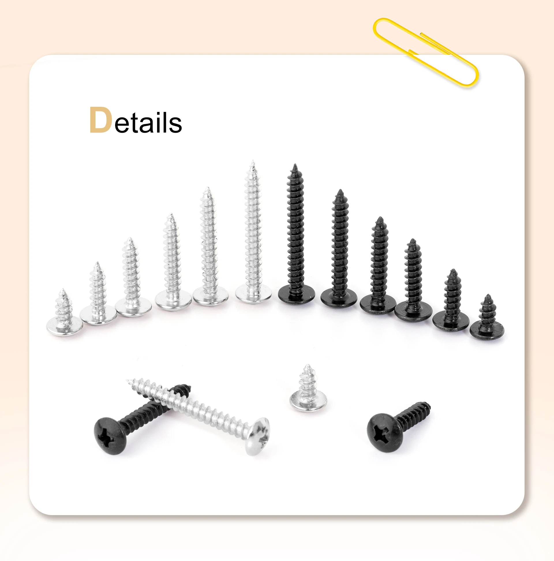 20PCS Phillips Truss Head Iron Screws Silver Black Self Tapping Drywall Screw Carpentry screws for Wooden Furniture Boxes Fixing