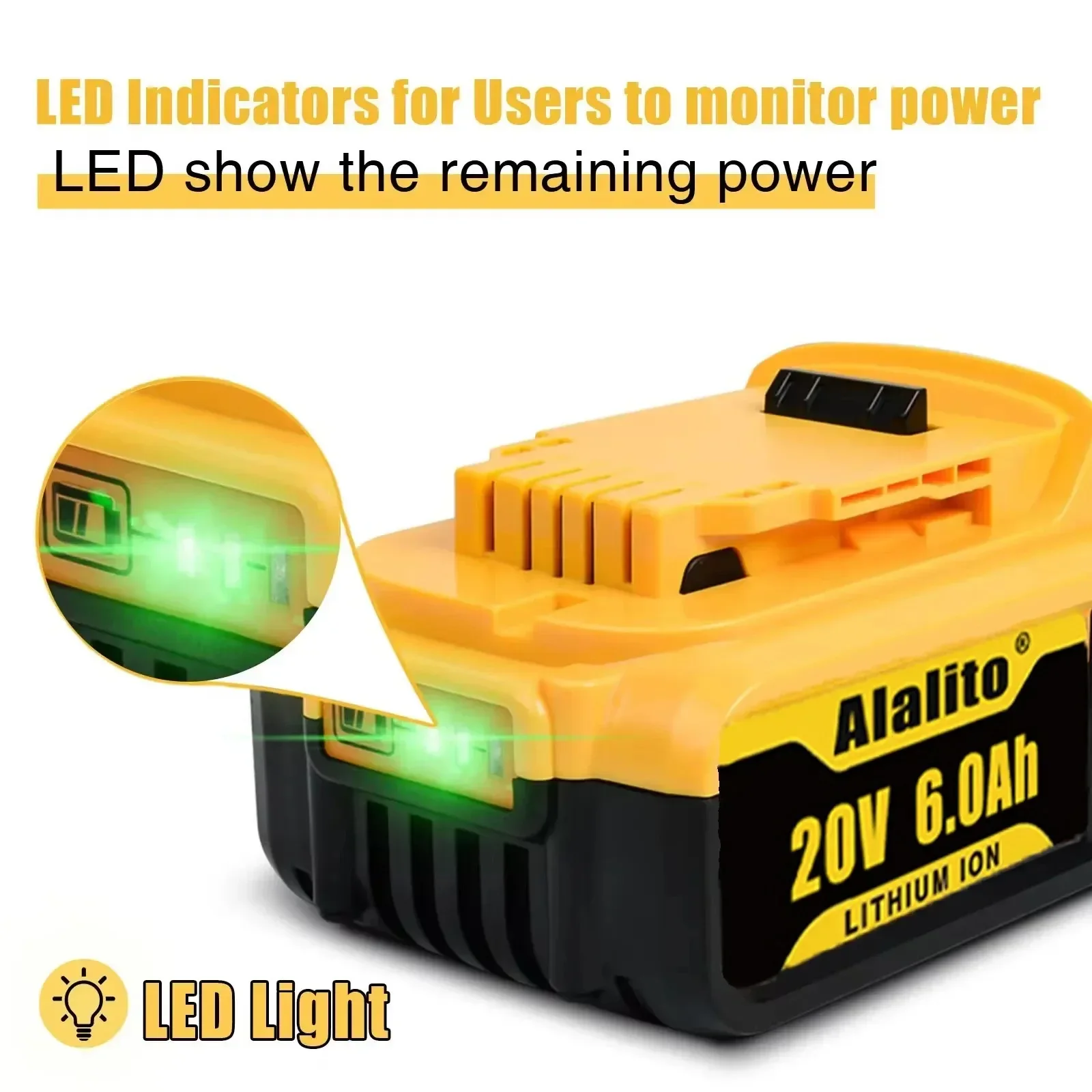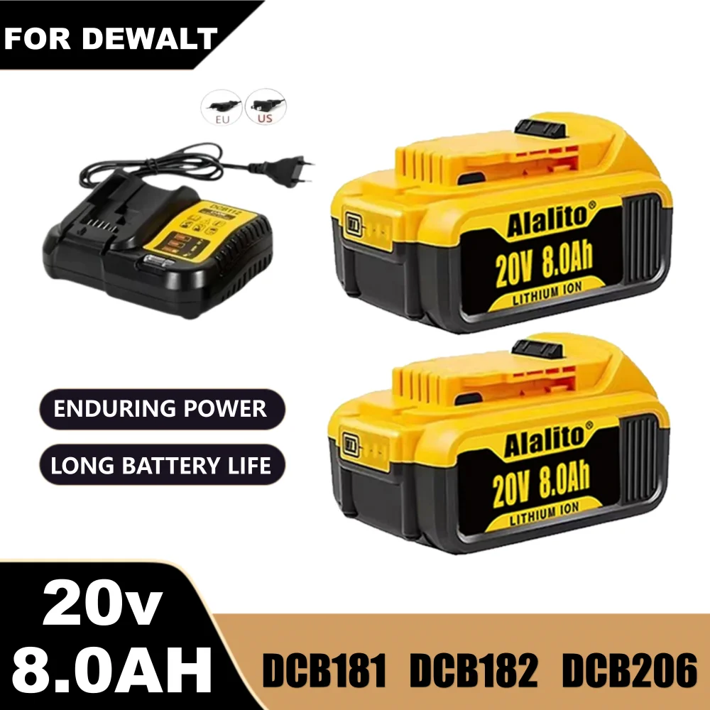20V 8.0Ah Battery Pack for DeWalt DCB205/DCB203 Tools, Extreme Temperature Resistant with LED Power Indicator