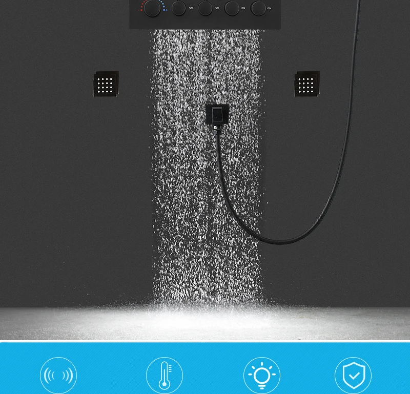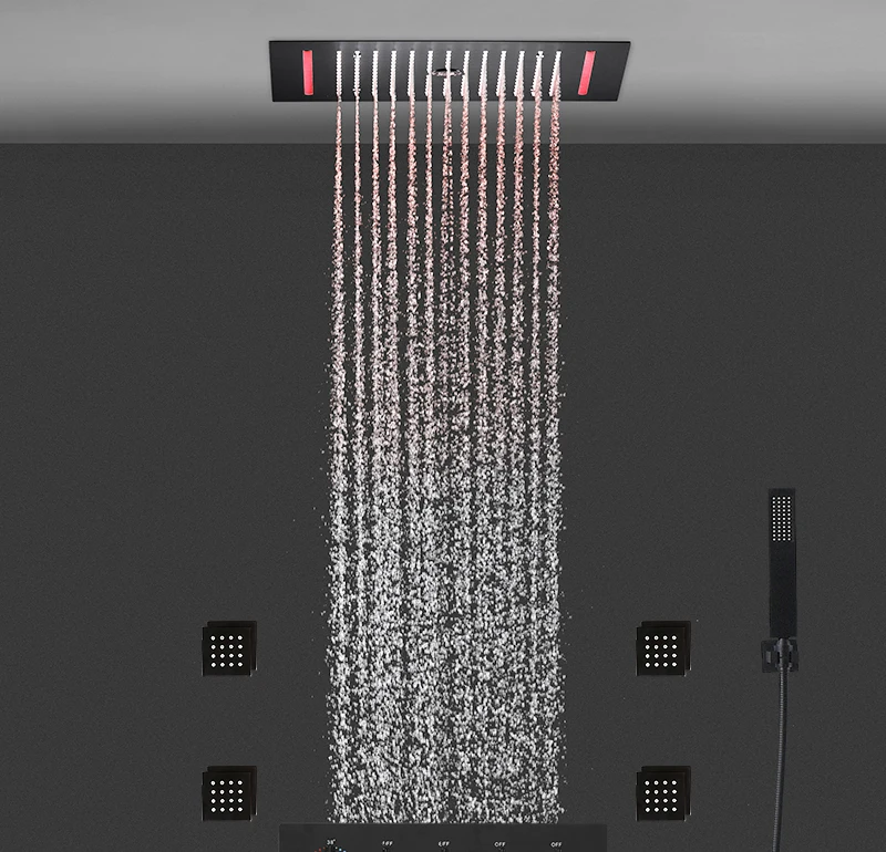 20X14inch 500x360mm Bathroom Ceiling Black Rainfall Column Shower Head Set Constant Temperature Mixer Valve Lateral Shower Jets