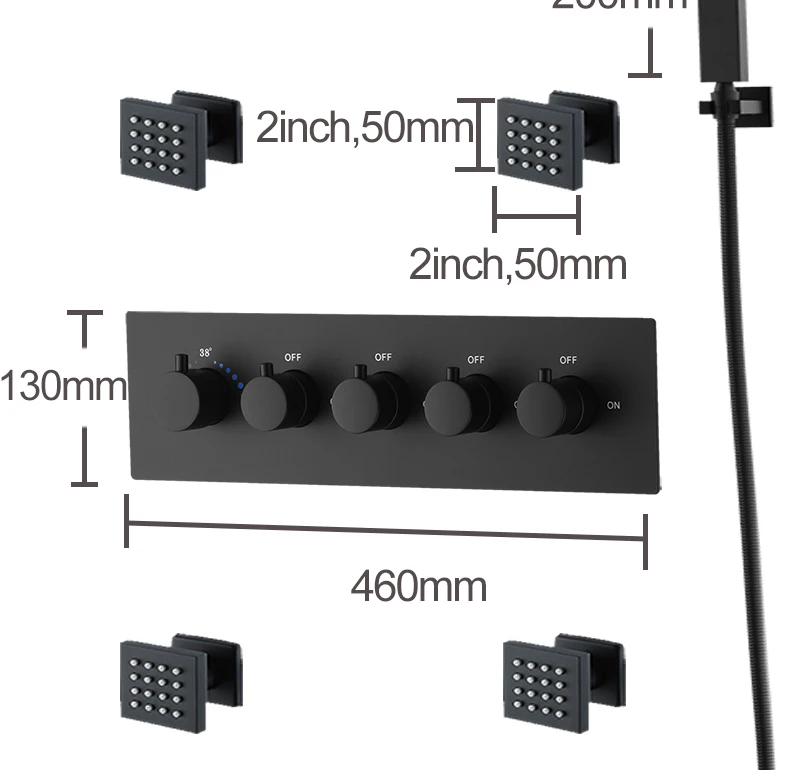 • Hand shower size: 200x35x15mm