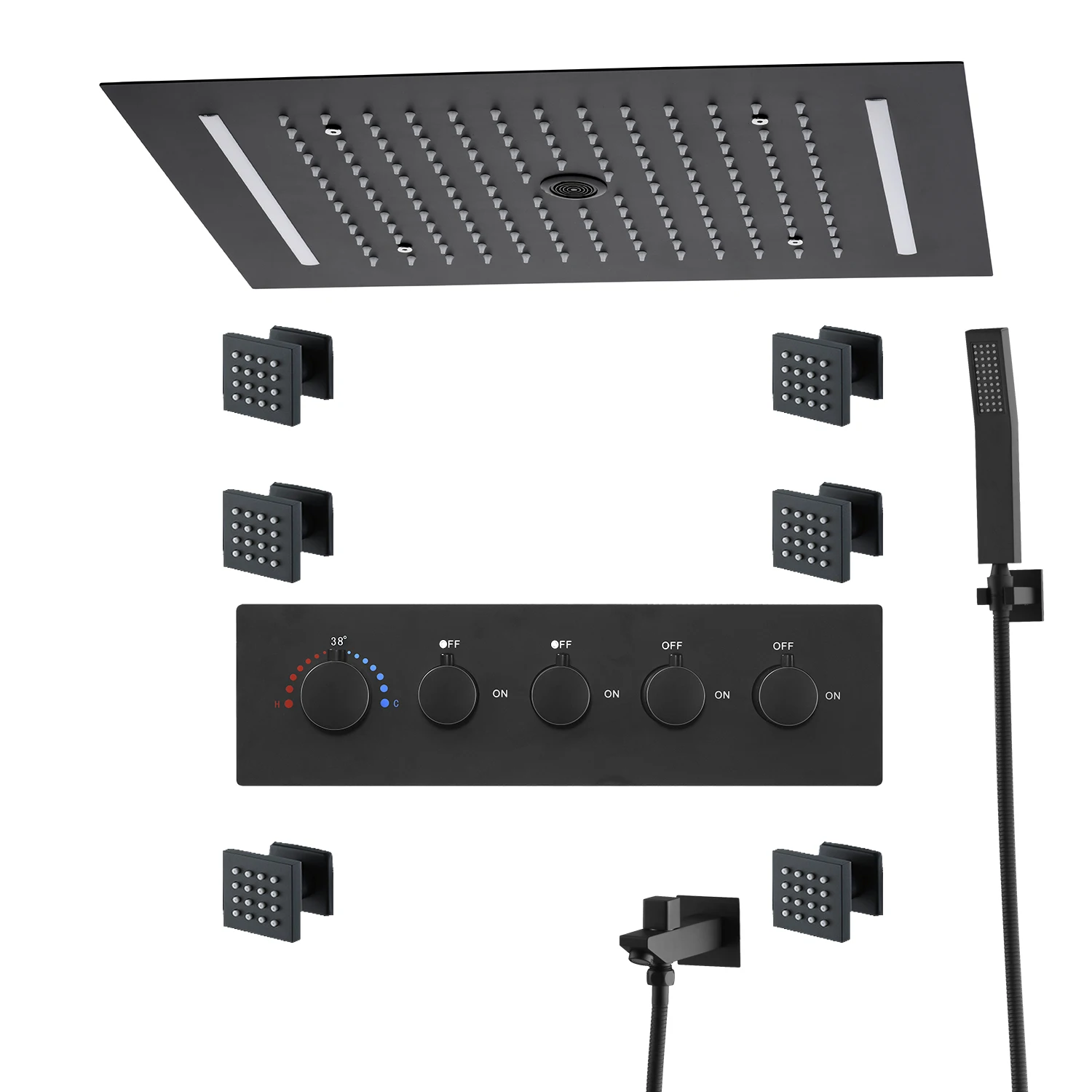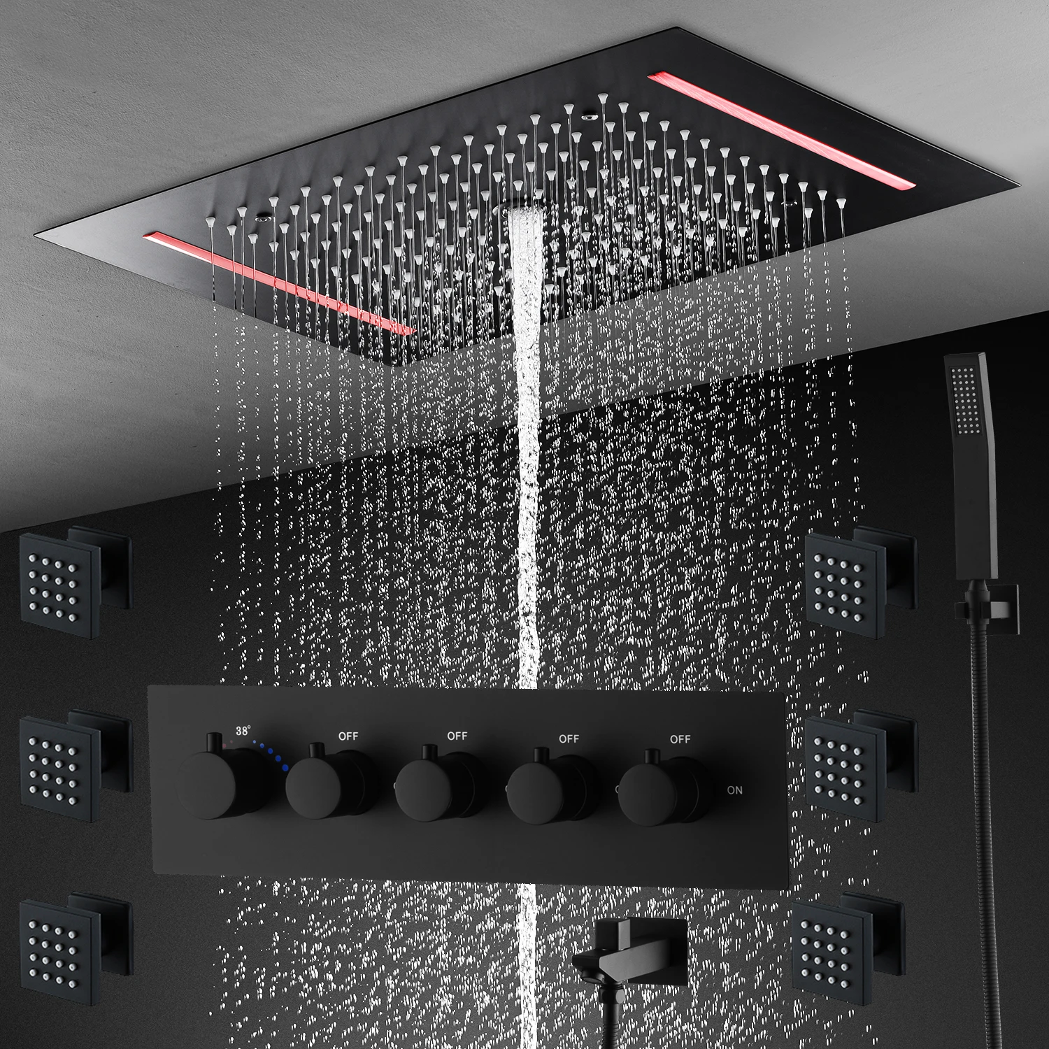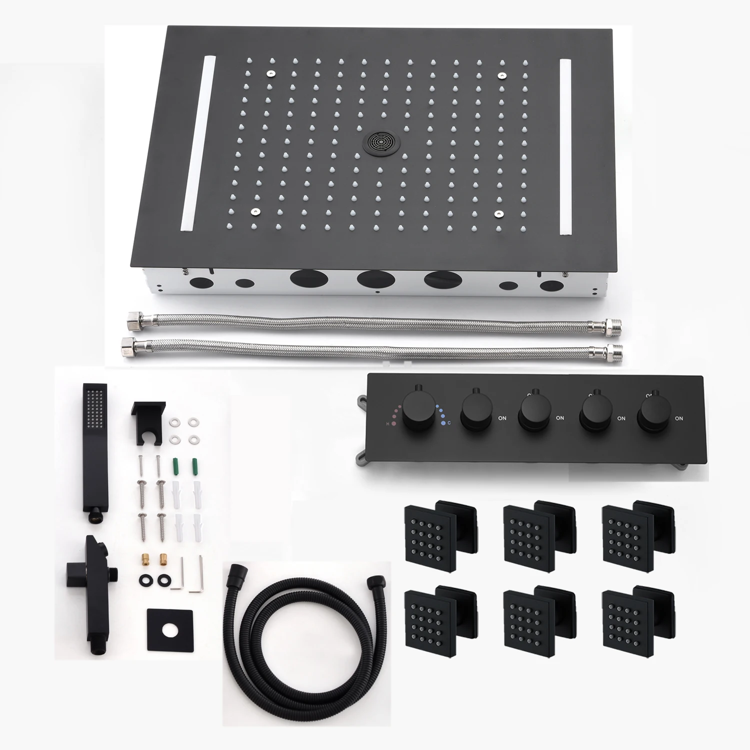 Be the first to review “20X14inch 500x360mm Bathroom Ceiling Black Rainfall Column Shower Head Set Constant Temperature Mixer Valve Lateral Shower Jets”