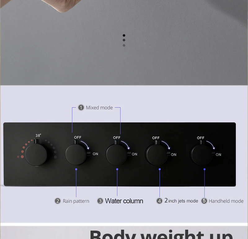 • Enjoy modes: Rainfall,column, jets and hand shower