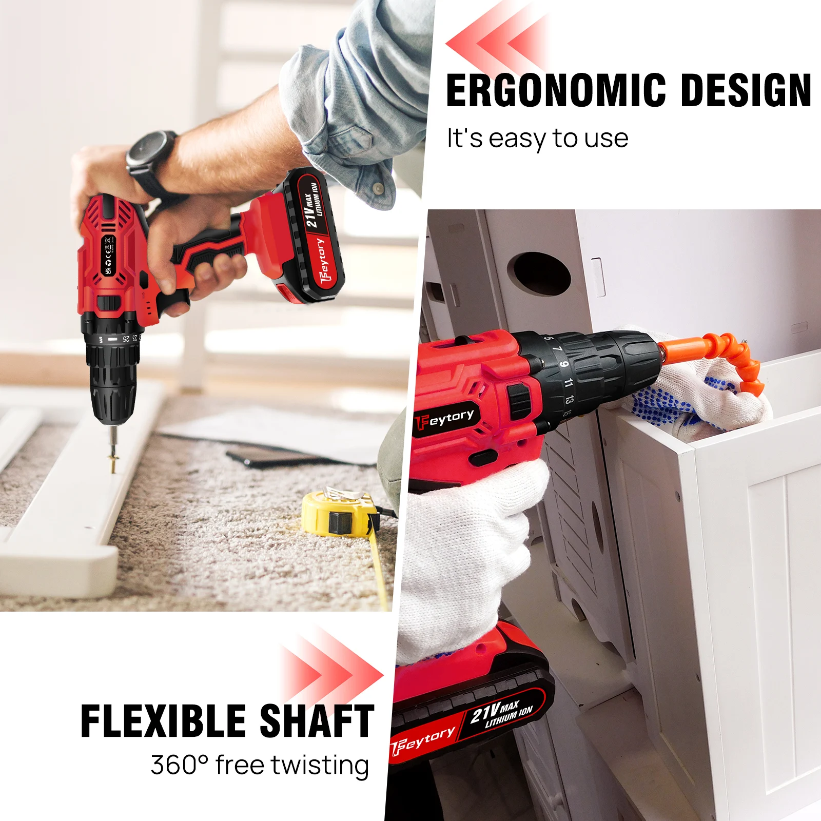 Our electric drill cordless only weights 1.1kg/2.4lb, easy to operate and carry. Non-slip rubber-covered handle design, you can easily operate it with one