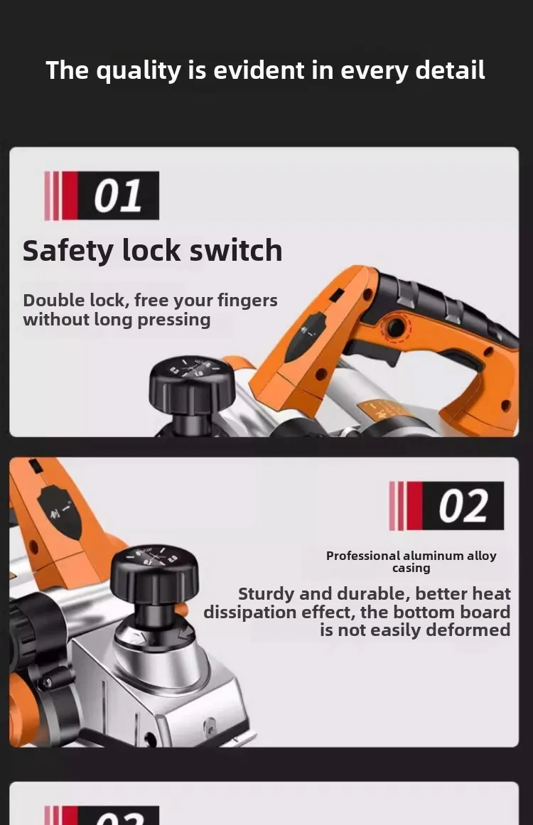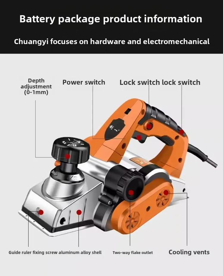 220V Electric Wood Planer with Adjustable Depth Control Lightweight Electric Planer for Woodworking Household