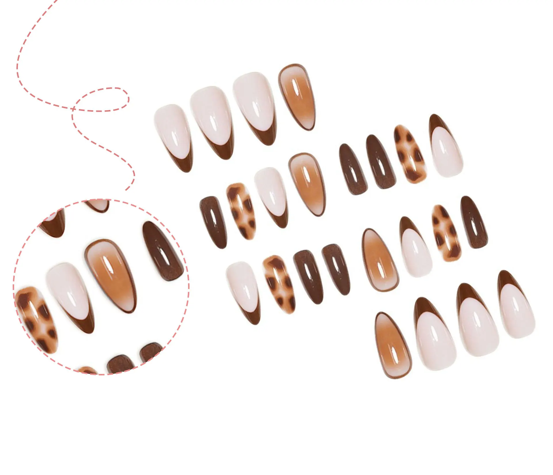 24 pieces of new French-style press-on nails (fashionable fake nail stickers), paired with 1 piece of jelly glue and 1 nail file
