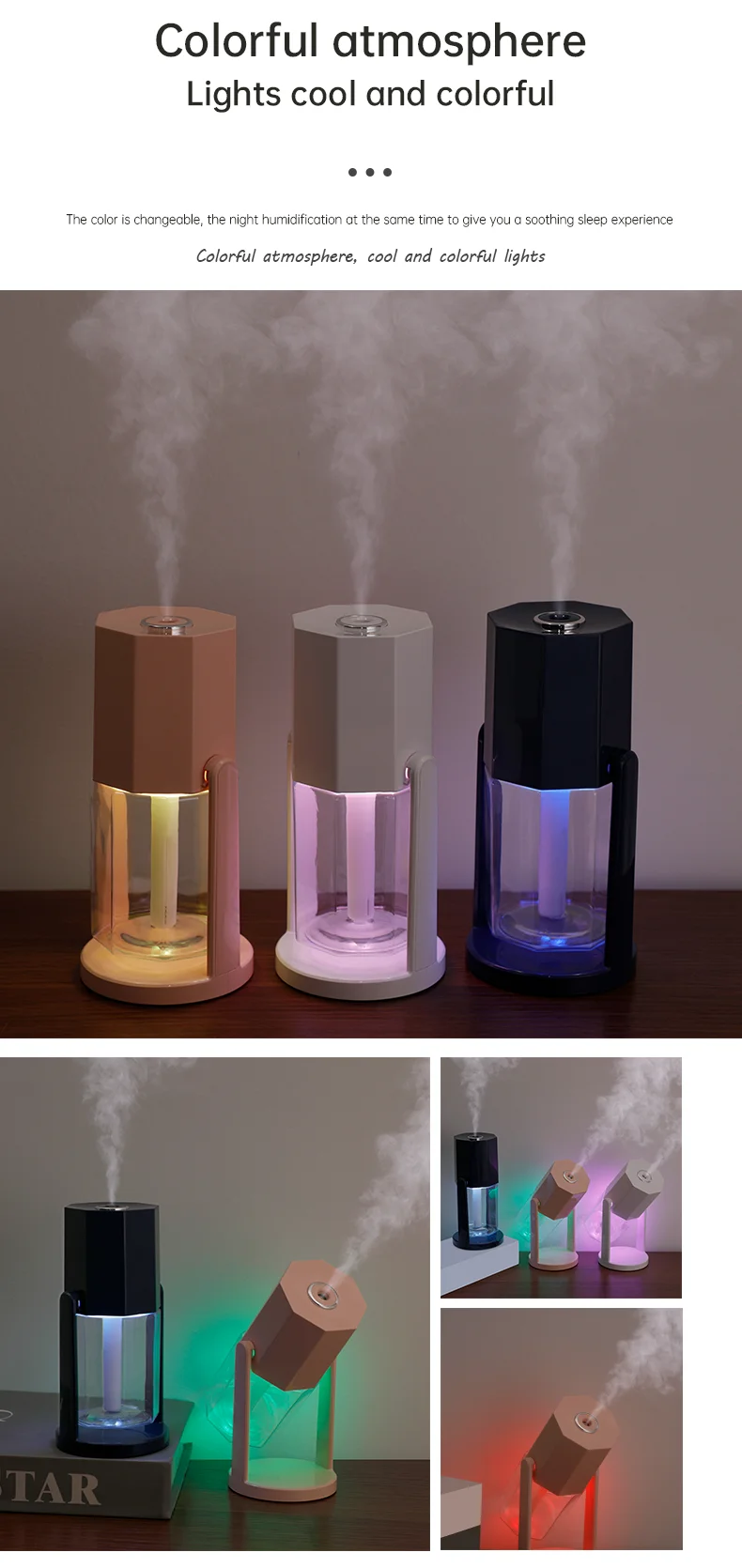 240ML Shake Head Air Humidifier for Car Ultrasonic with Colorful Atmosphere Lights Mini Humidifier for Home Office Mist Maker