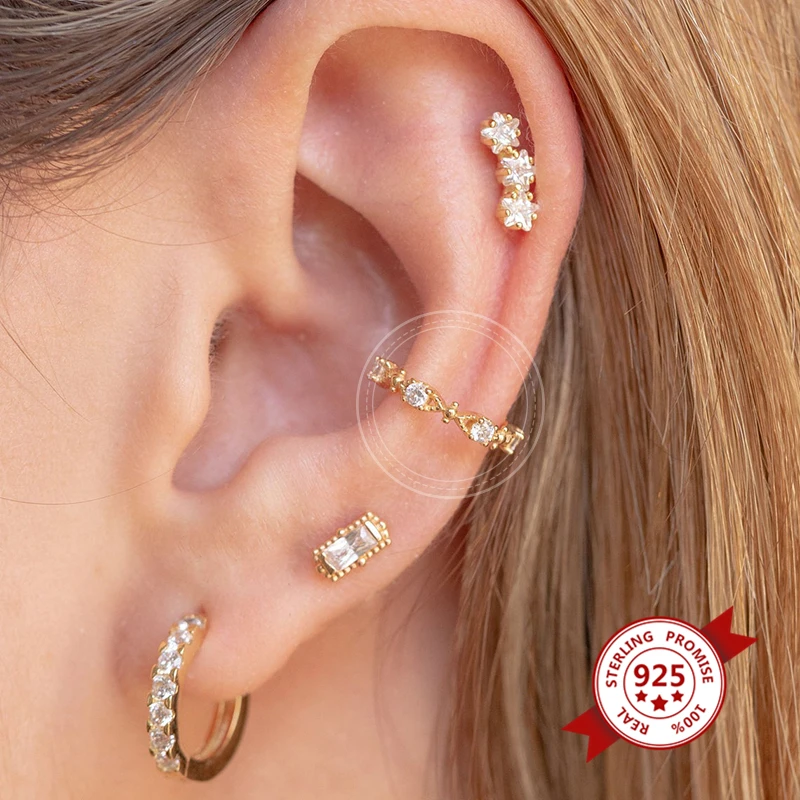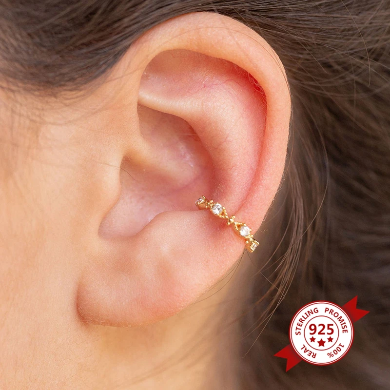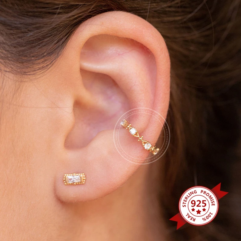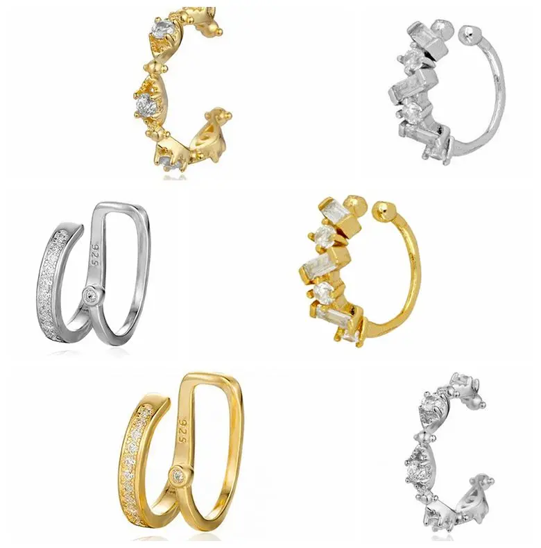 1PC 24k Gold-Plated Silver Irregular Geometry Ear Clip Earrings for Women Simple Crystal ear cuff Without Piercing Earrings Jewelry
