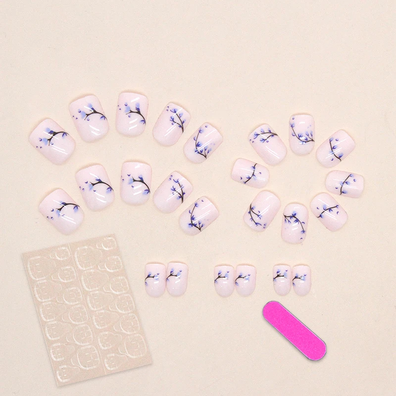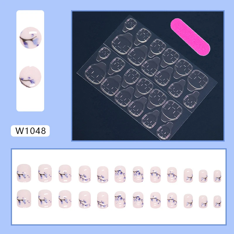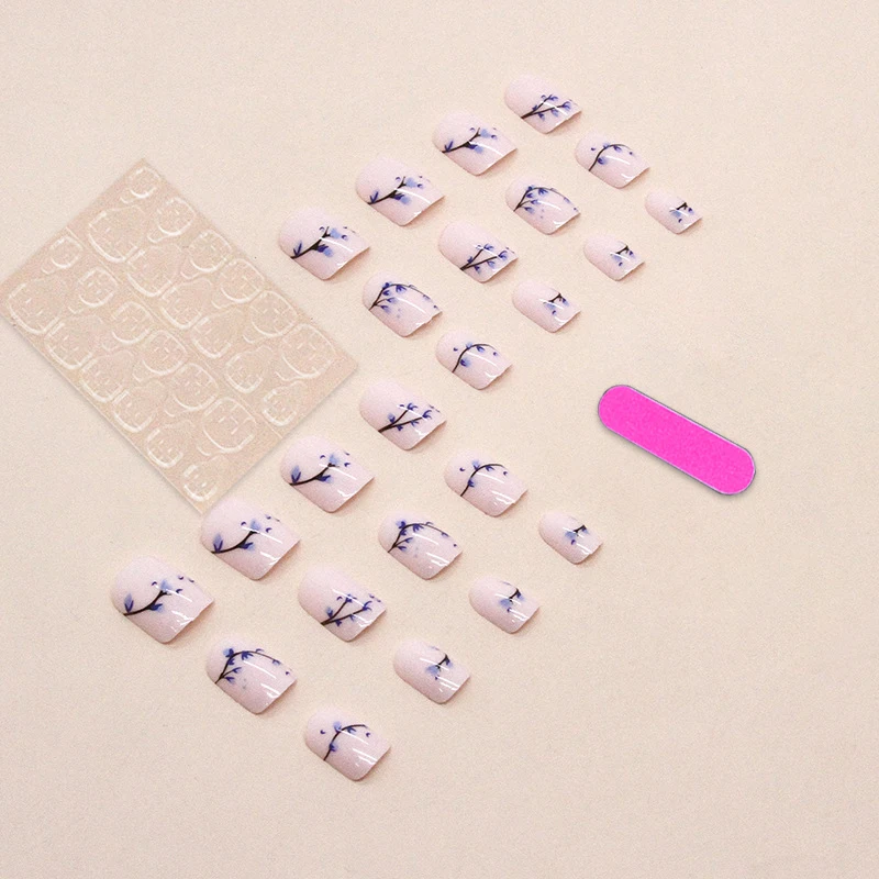 24pcs Square Fake Nails +1 Nail File +1 Jelly Glue