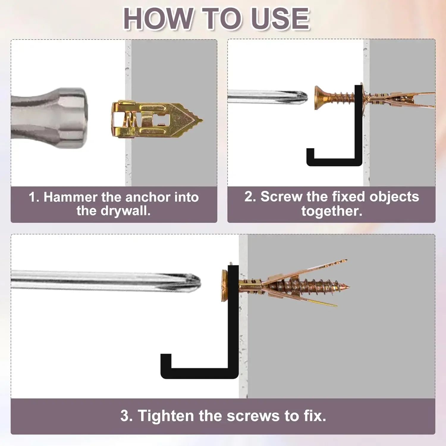 Simple Installation: First, knock the no-drill anchors into the wall. Then, insert the screws into the anchors. Finally, tighten the screws until they are secure. It’s a straightforward process that anyone can follow