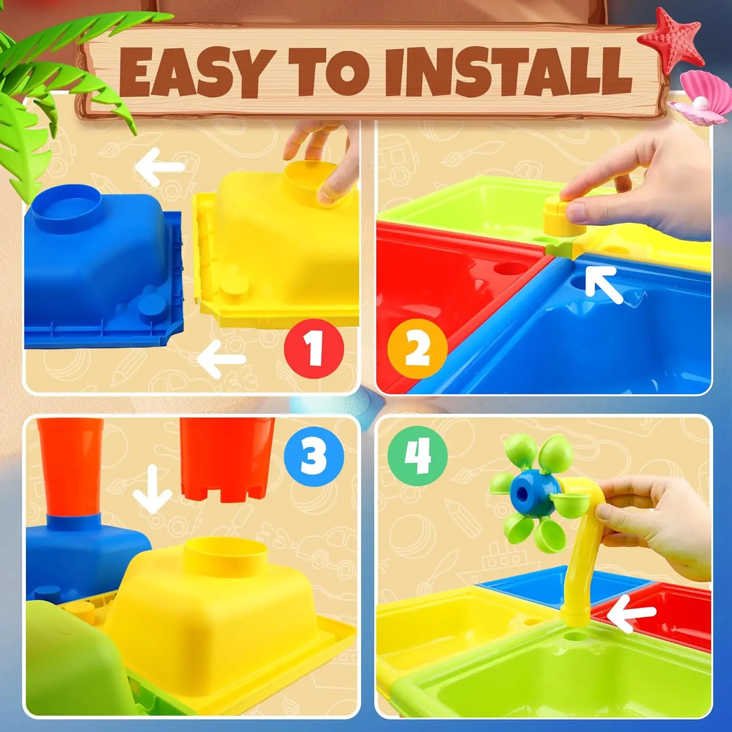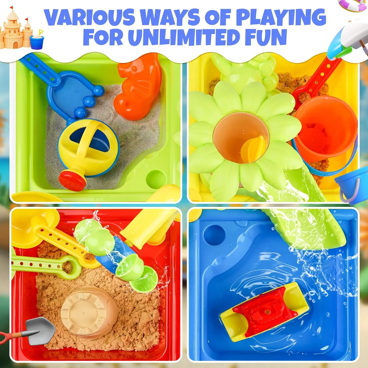 25 Pcs Summer Water Table for Toddlers 4 In 1 Kids Water and Sand Outdoor Activity Sensory Toy Beach Pool Backyard Toy