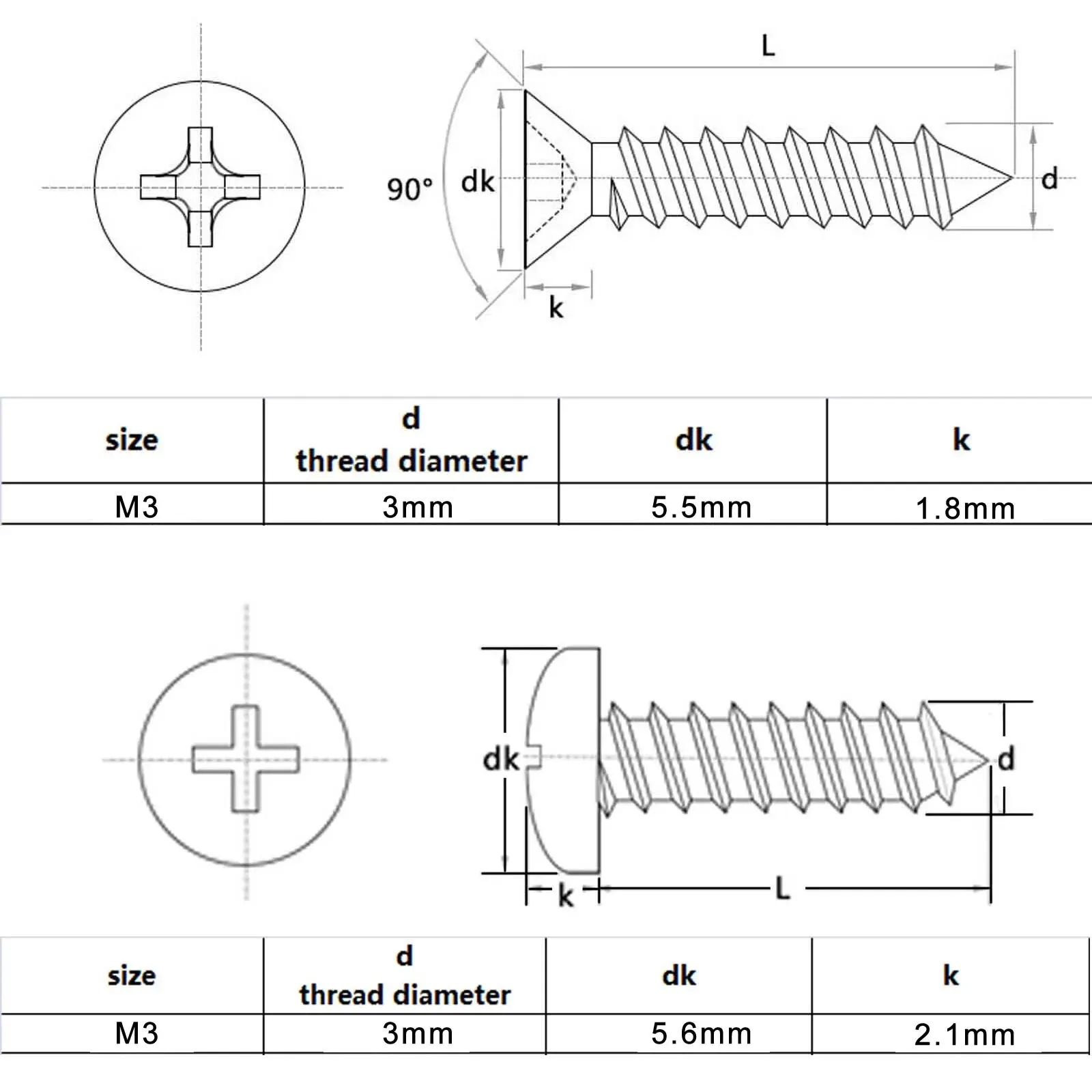 • Large Variety of Sizes: This set includes tapping screws in M3, 6 length, providing a wide range of options for different projects.