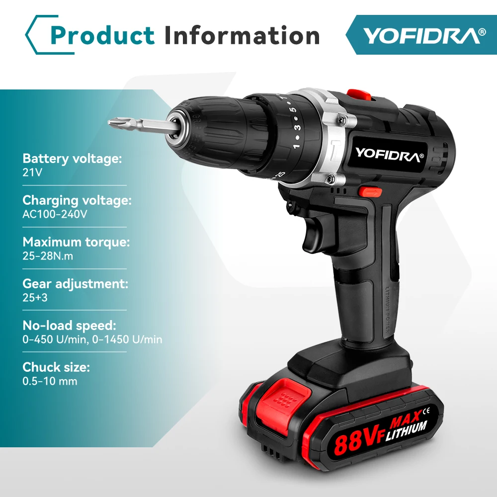 25+3 Torque Cordless Electric Impact Drill Screwdriver Efficient Woodworking DIY Household Power Tool with 24pcs Accessories