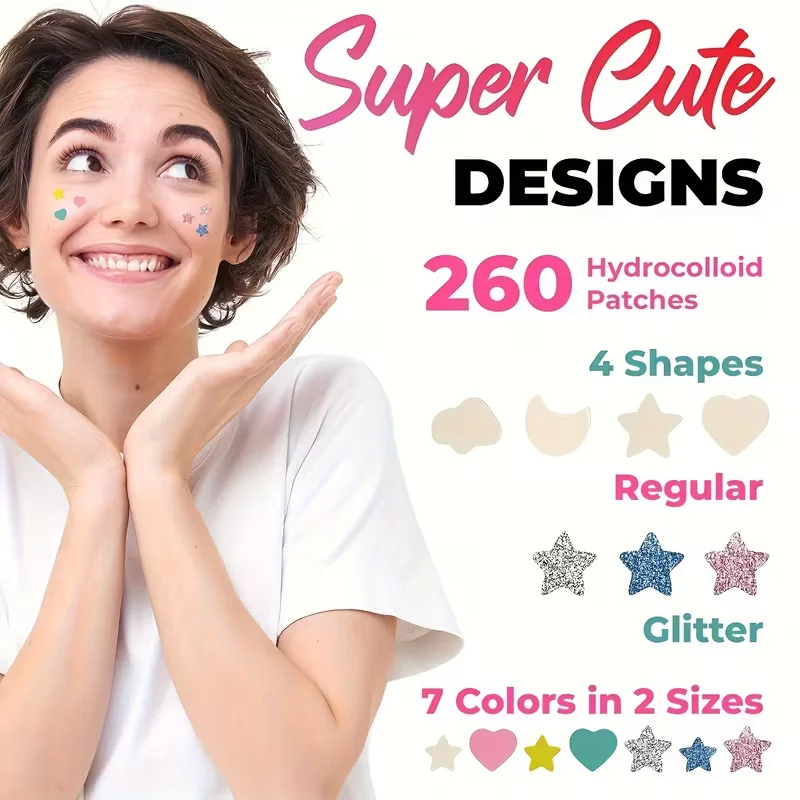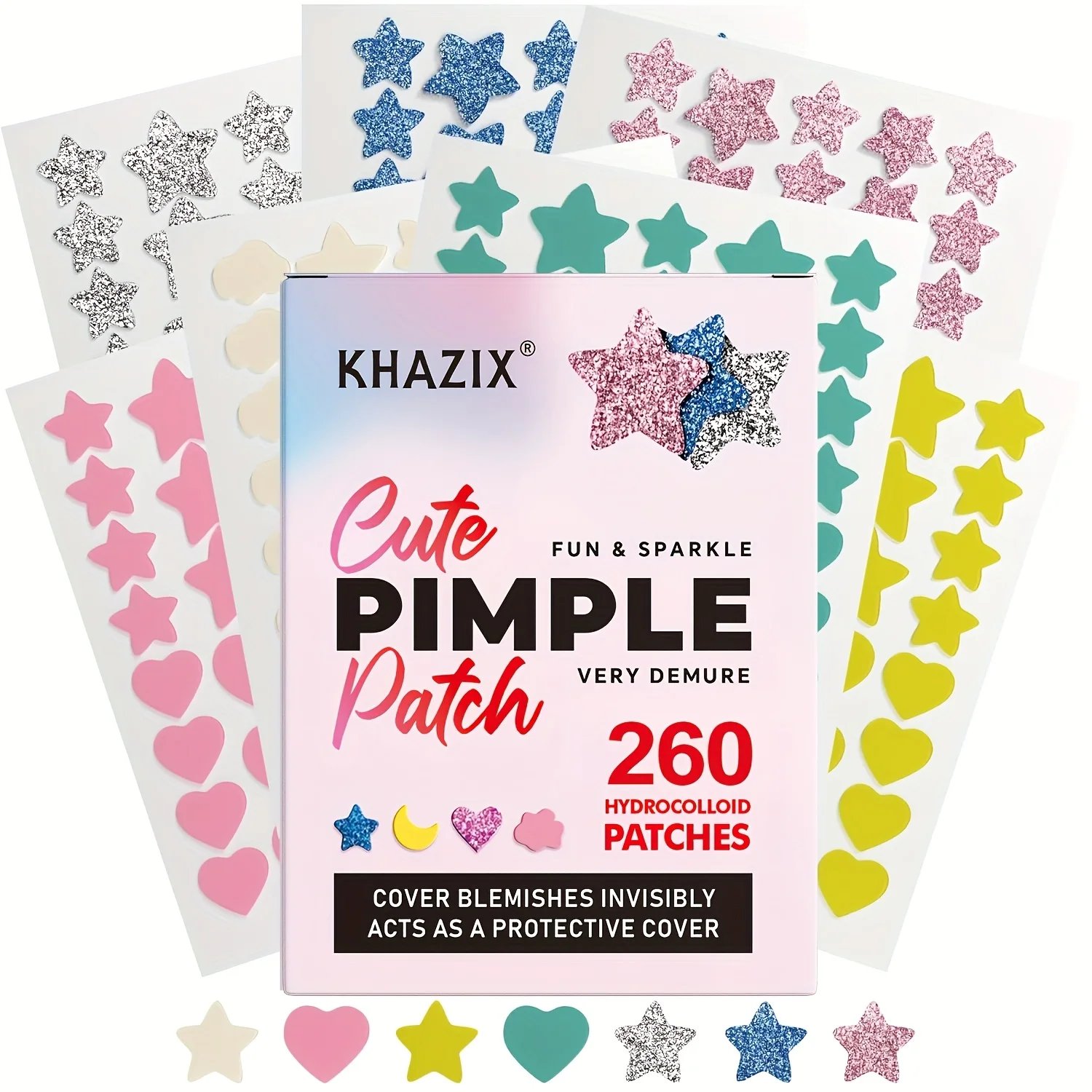 260Pcs Cute Pimple Patches for Face – Hydrocolloid Acne Patches, Zit Patches – Blemish Patches for Face Skin Care – Star, Heart,
