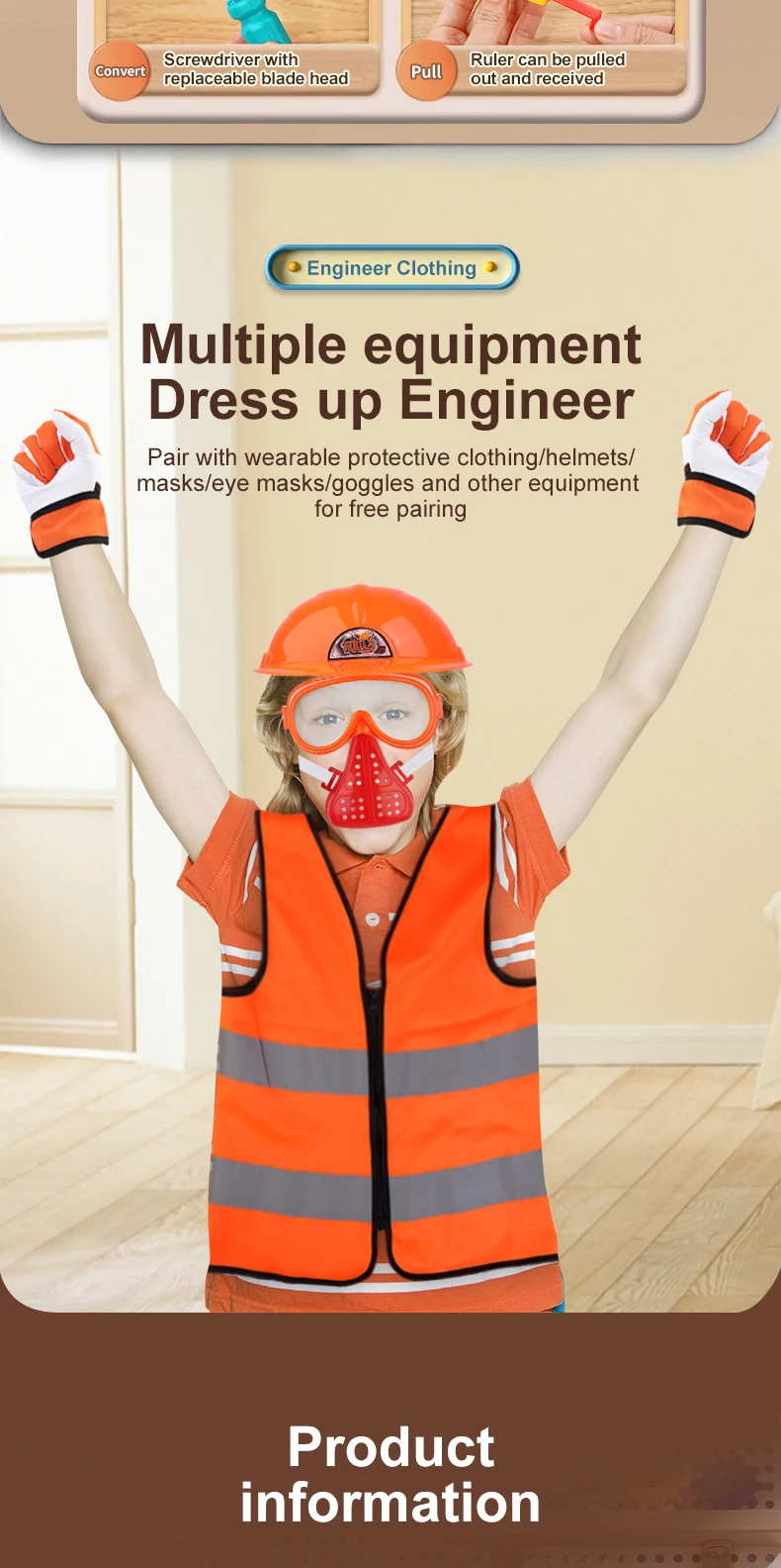 * Play set with total of 27 pieces including goggles, helmets, work clothes, gloves, and face masks etc., bringing you an immersive