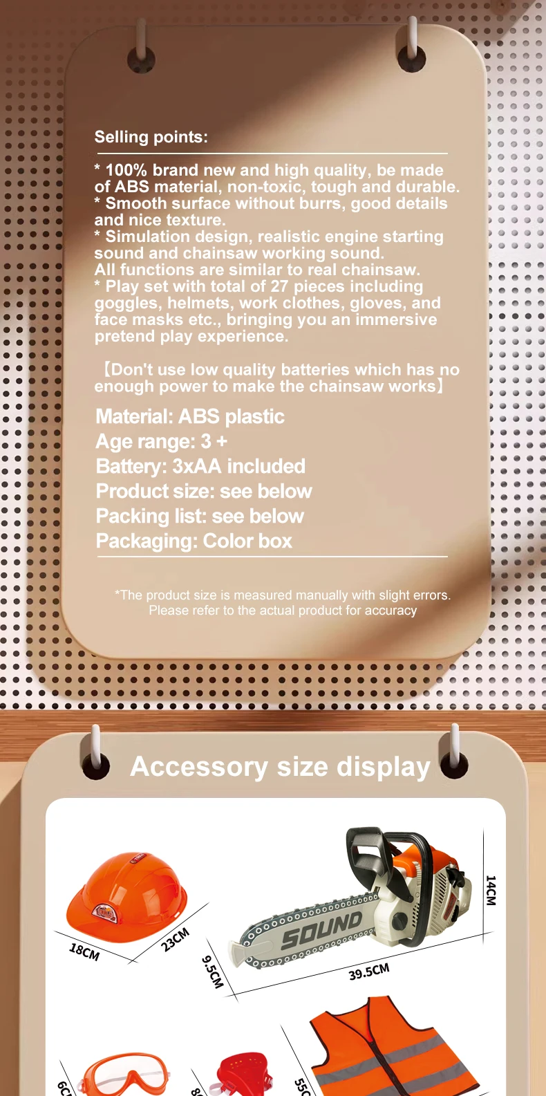 - Model Number: 27pcs Kids Chainsaw Toys Diy Tools Set