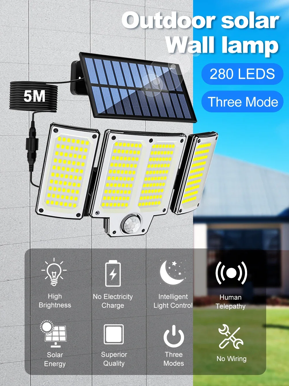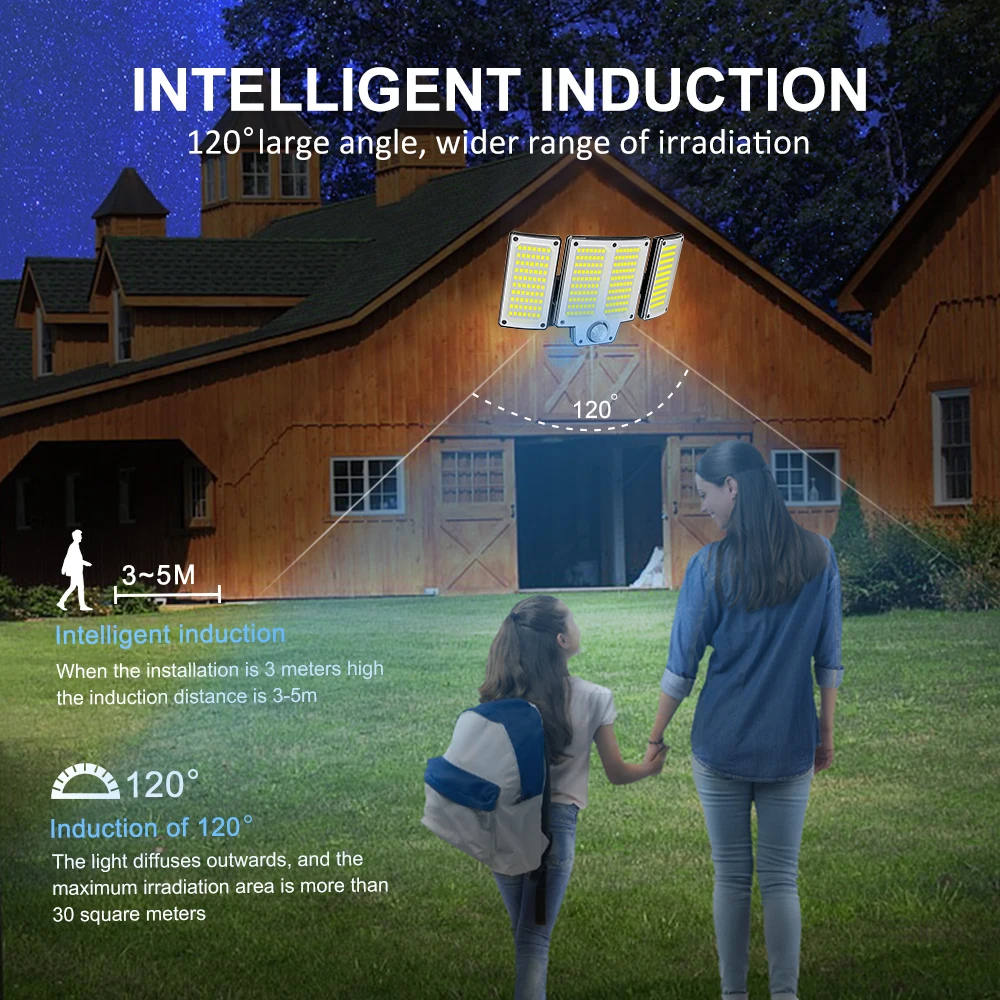【Easily Adjust the Lighting Angle of the light】: Adjustable head can be up and down 180°. The detection range angle is up to 120°, and the lamps and solar panels can be easily adjusted to different angles according to your requirements.The cable (detachable) is provided between the sensor outdoor light and the solar panel. It is convenient for you to install it in a sunny place to meet your lighting needs from different angles. No electricity required, environmentally friendly product.