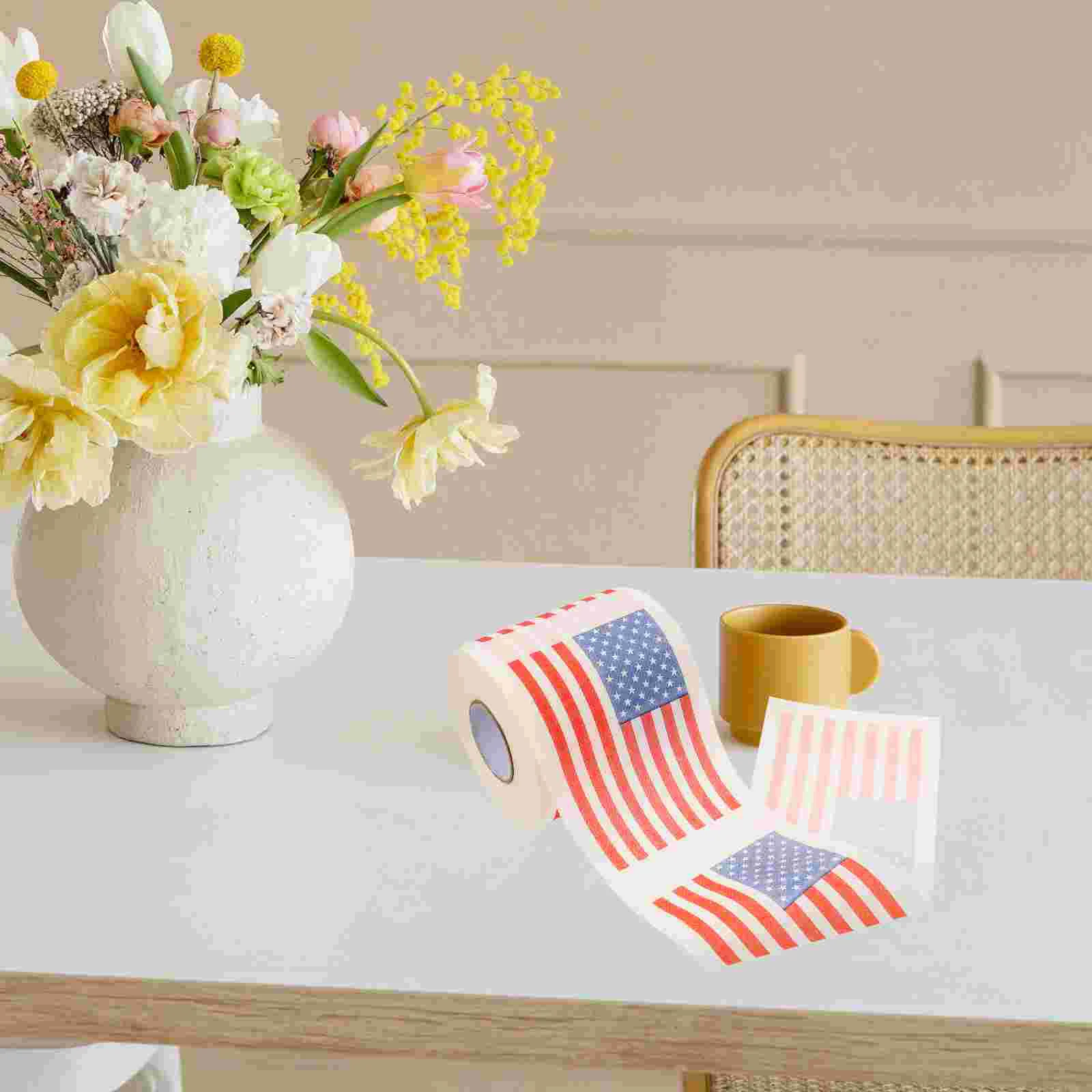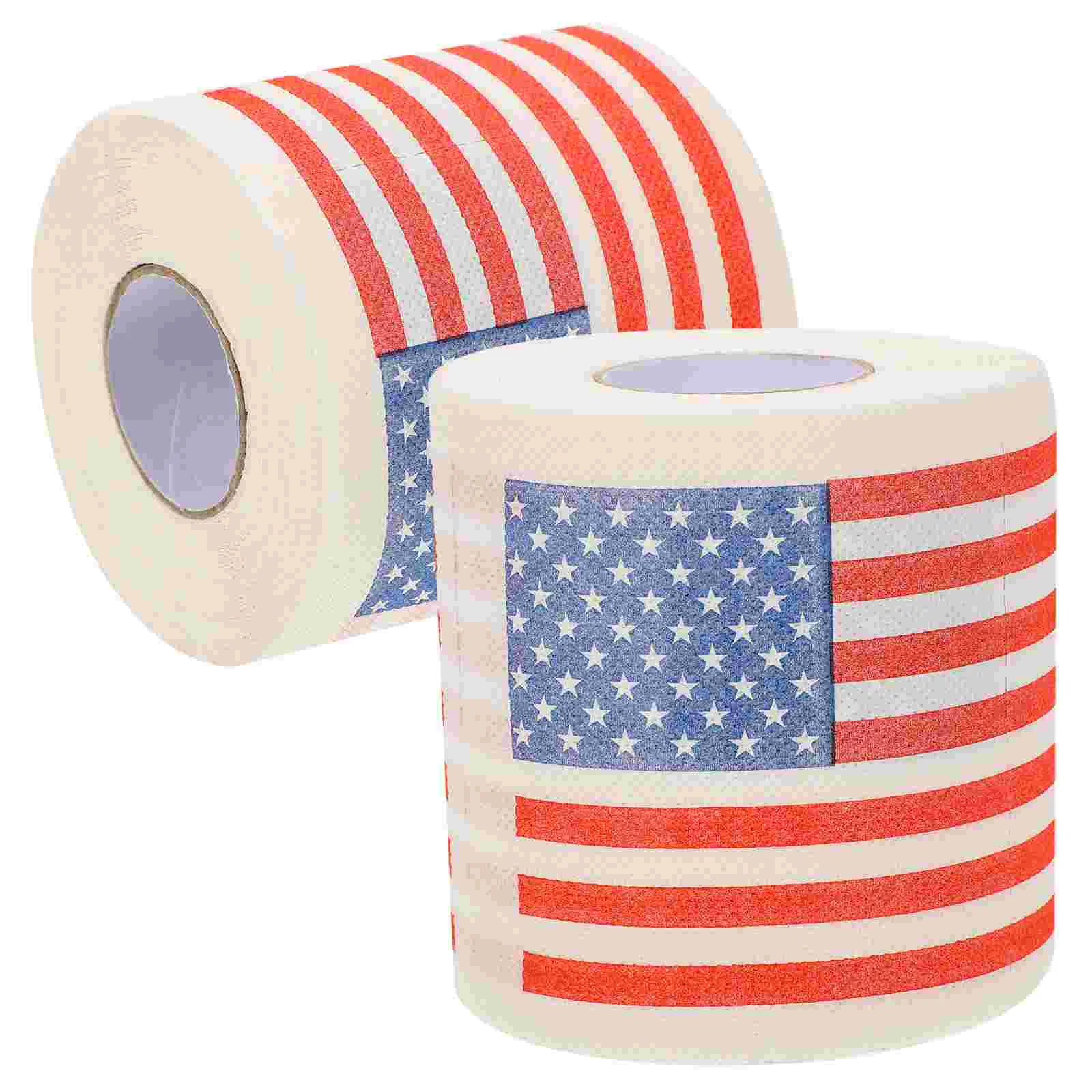 2Pcs American Flag Toilet Papers Napkin Tissue Paper Bathroom Roll Paper Handkerchief Papers Premium Wood Pulp Material Safe Non