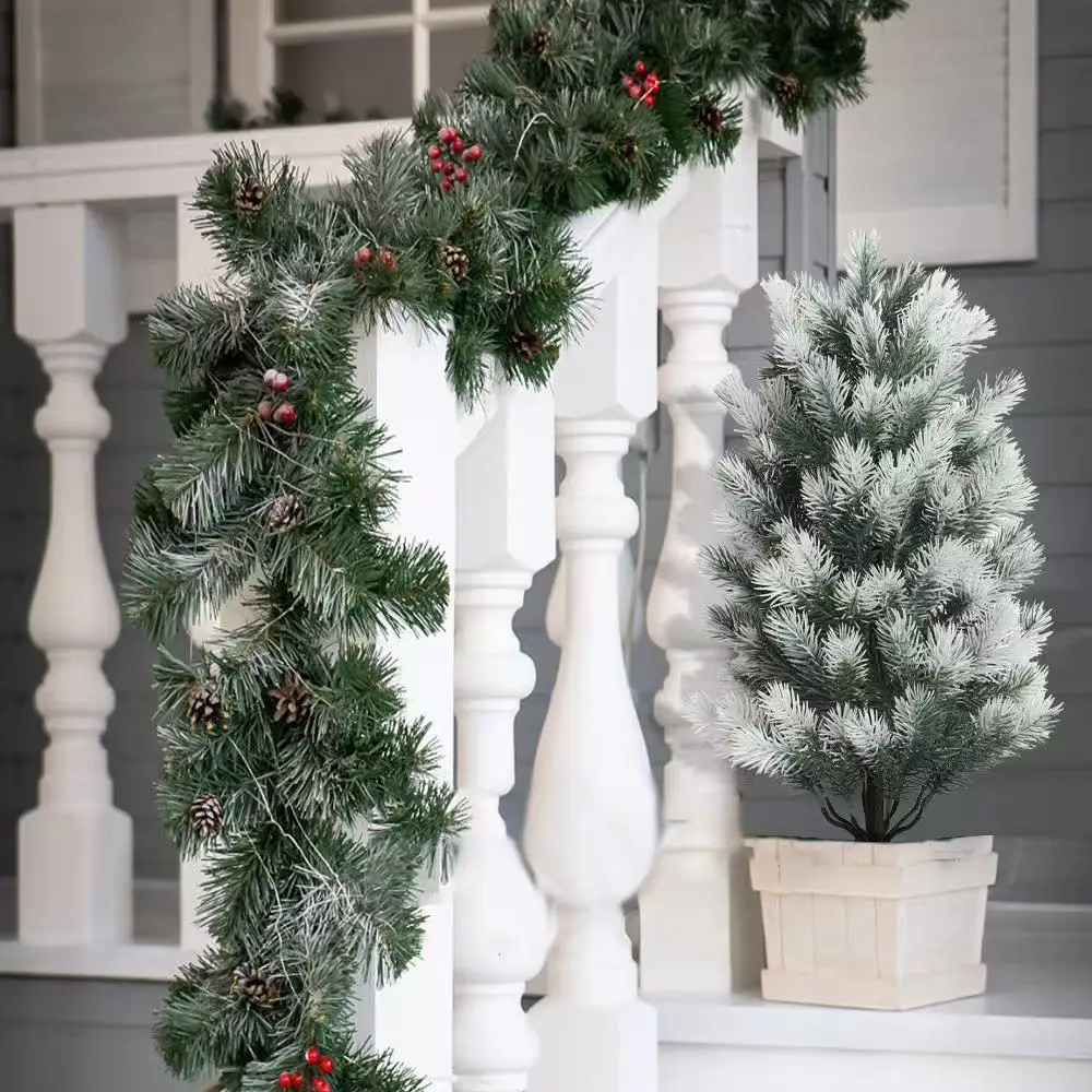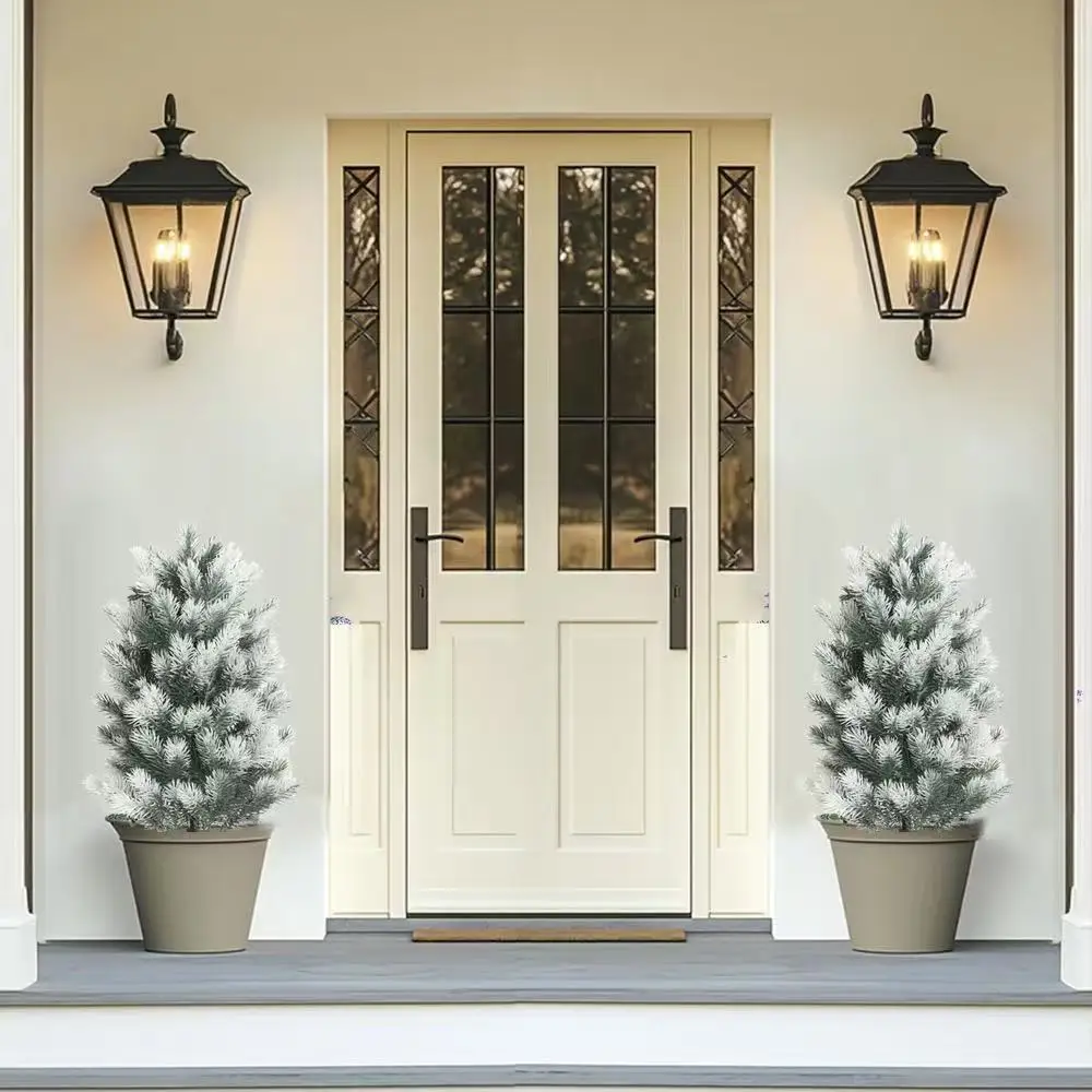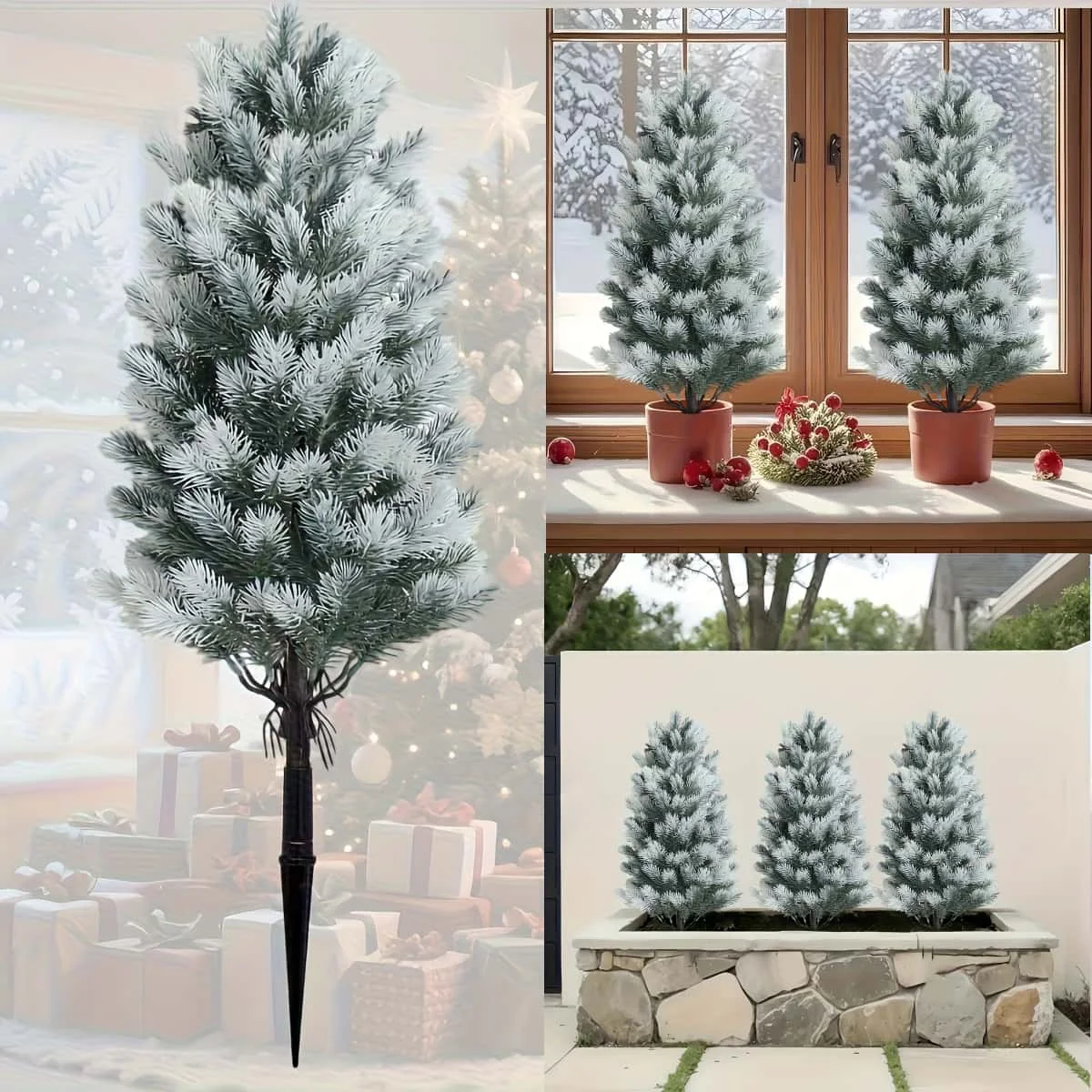 2pcs Artificial Christmas Pine Trees with Black Spiked Base – Indoor/Outdoor Holiday Decor- Thanksgiving, Christmas Decor