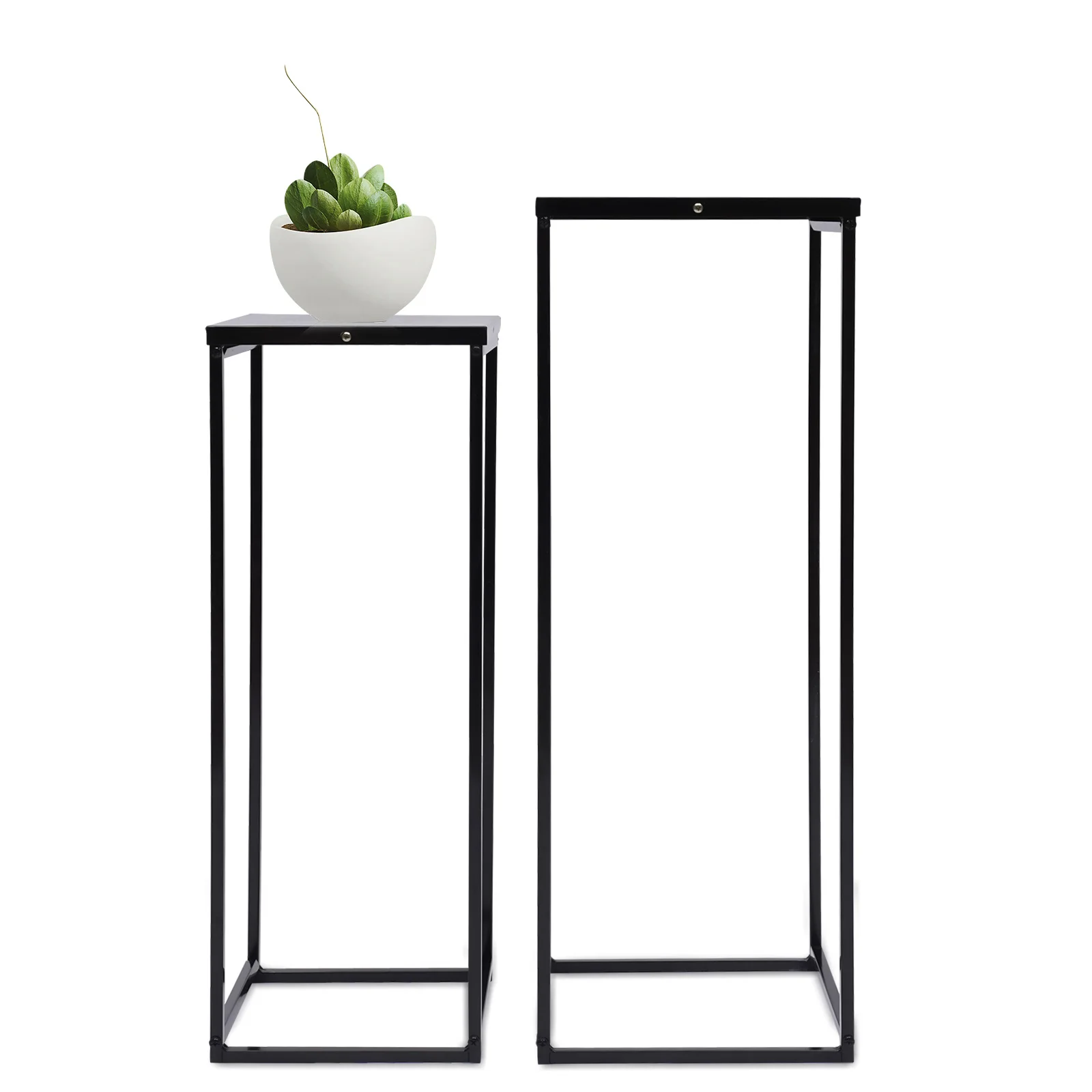 2PCS Black Plant Stand Metal Square Flower Holder Durable Rack Patio Garden For Living Room Decor