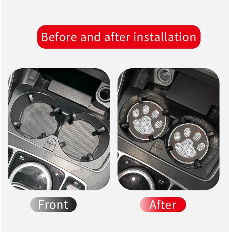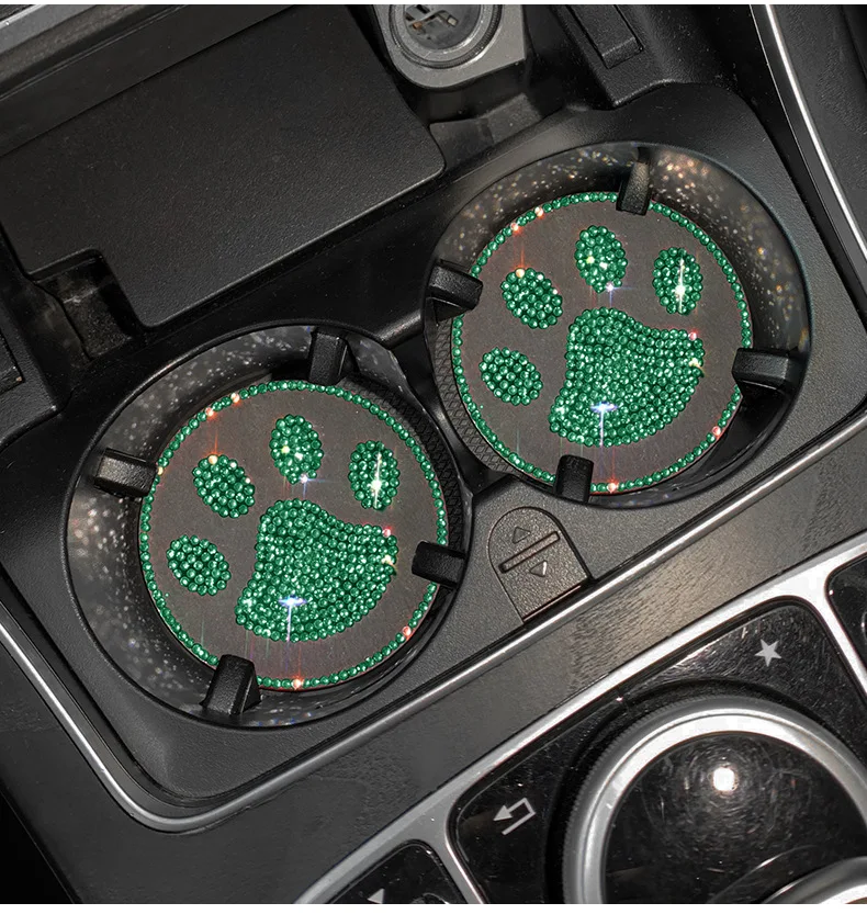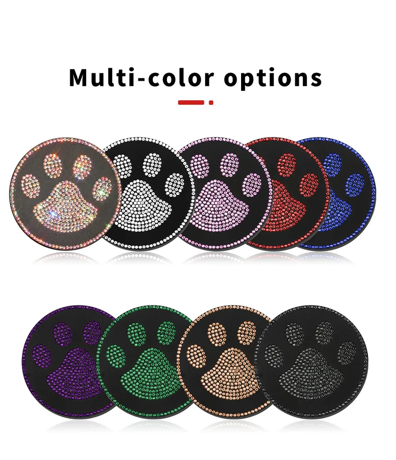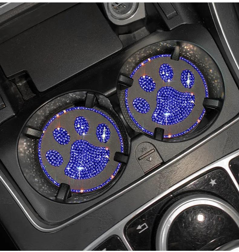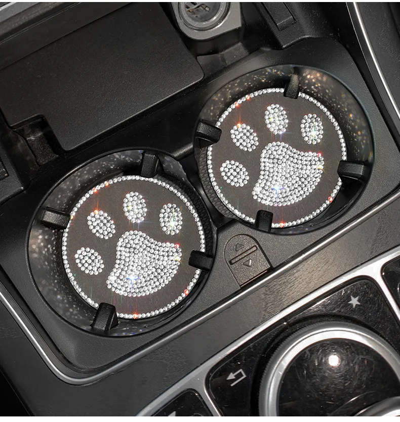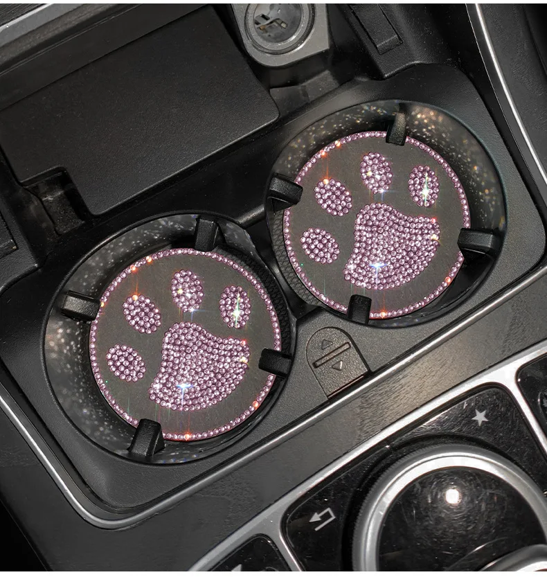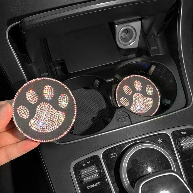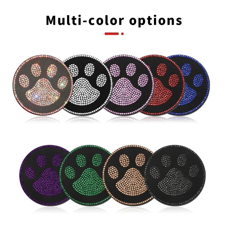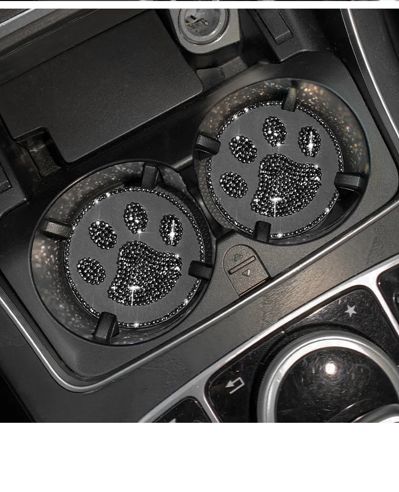 2pcs Diamond Crystal Paw Print Car Coaster Water Cup Slot Non-Slip Mat Silica Gel Pad Cup Holder Mat Gadget Car Accessories