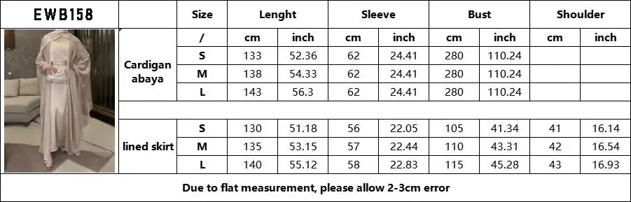 2pcs Elegant Shiny Cardigans for Women Dress Arabic Abaya Kimono Muslim Sets Dubai Open Abaya Turkey Kaftan kebaya Eid Ramadan