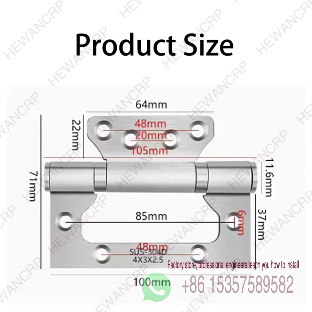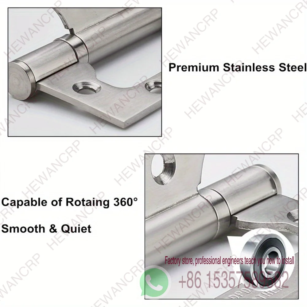 2pcs Heavy-Duty Stainless Steel Door Hinges Thickened Waterproof Rust-Resistant Silent Closing Thick Bearings Brushed Finish