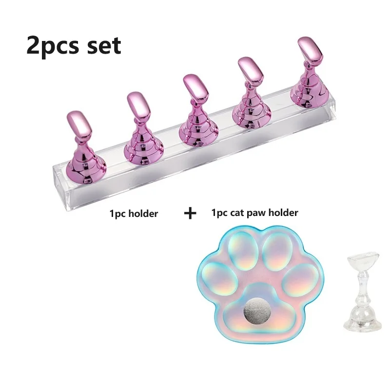 2PCS Set Nail Art Practice Holder DIY Flase Nail Practice Base Press-on False Nail Display Holder Cat Paw Manual Nail Tools Nail