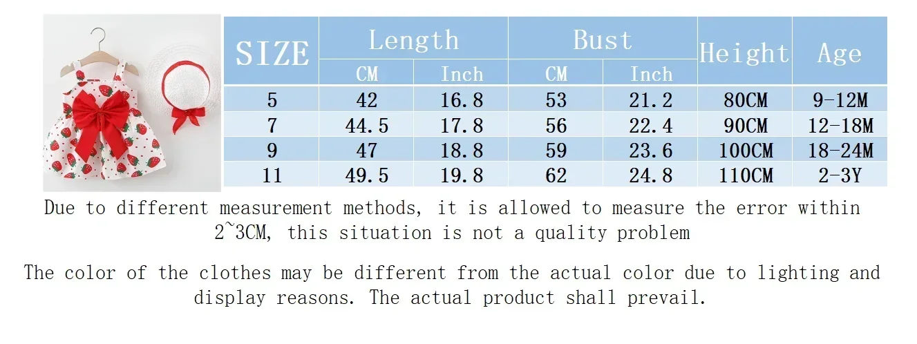 Be the first to review “2Pcs/Set Summer Toddler Girls Dress Sweet Bow Strawberry Sleeveless Baby Clothes Suit Princess Party Children Costume 0 To 3 Y”